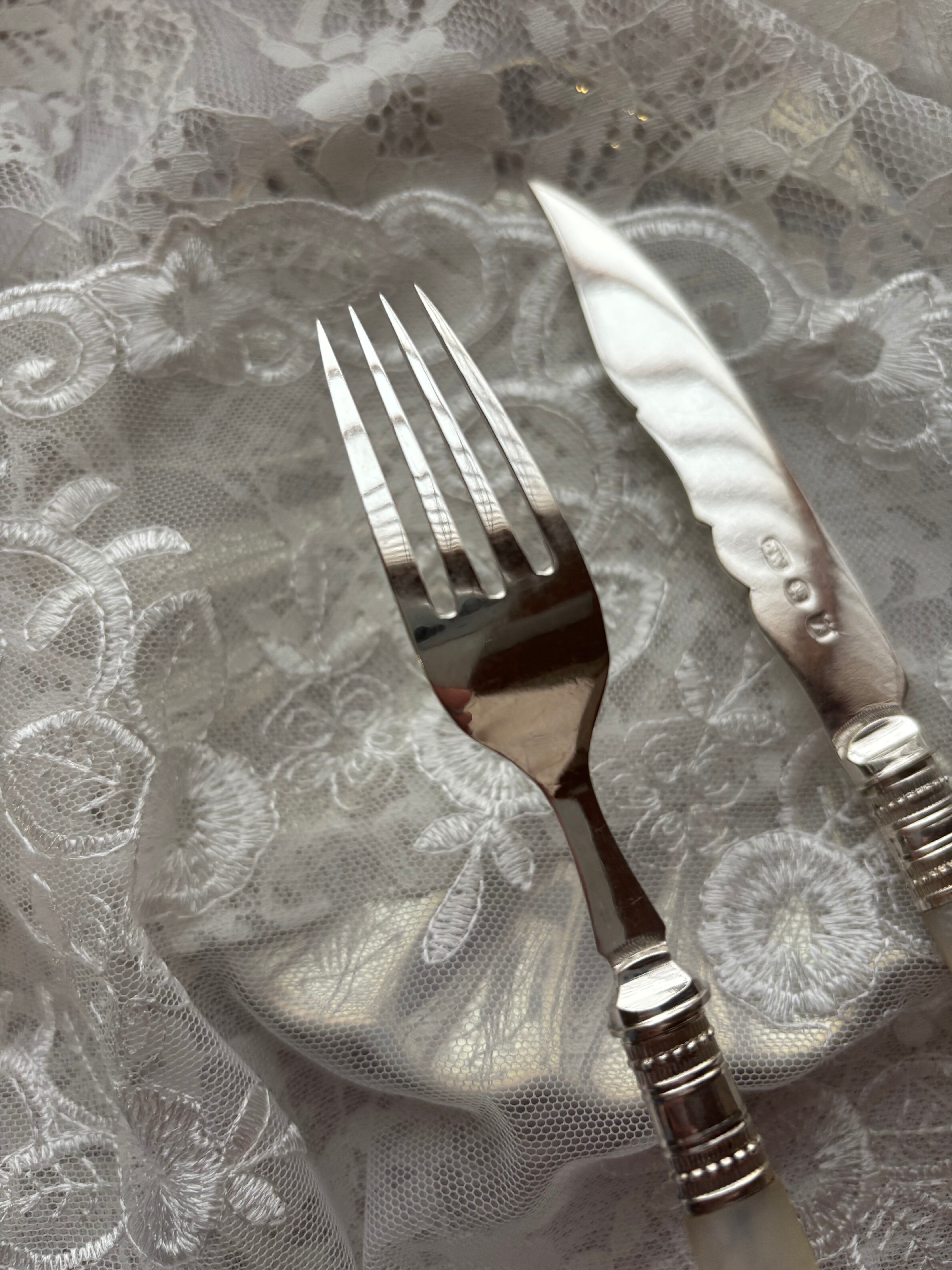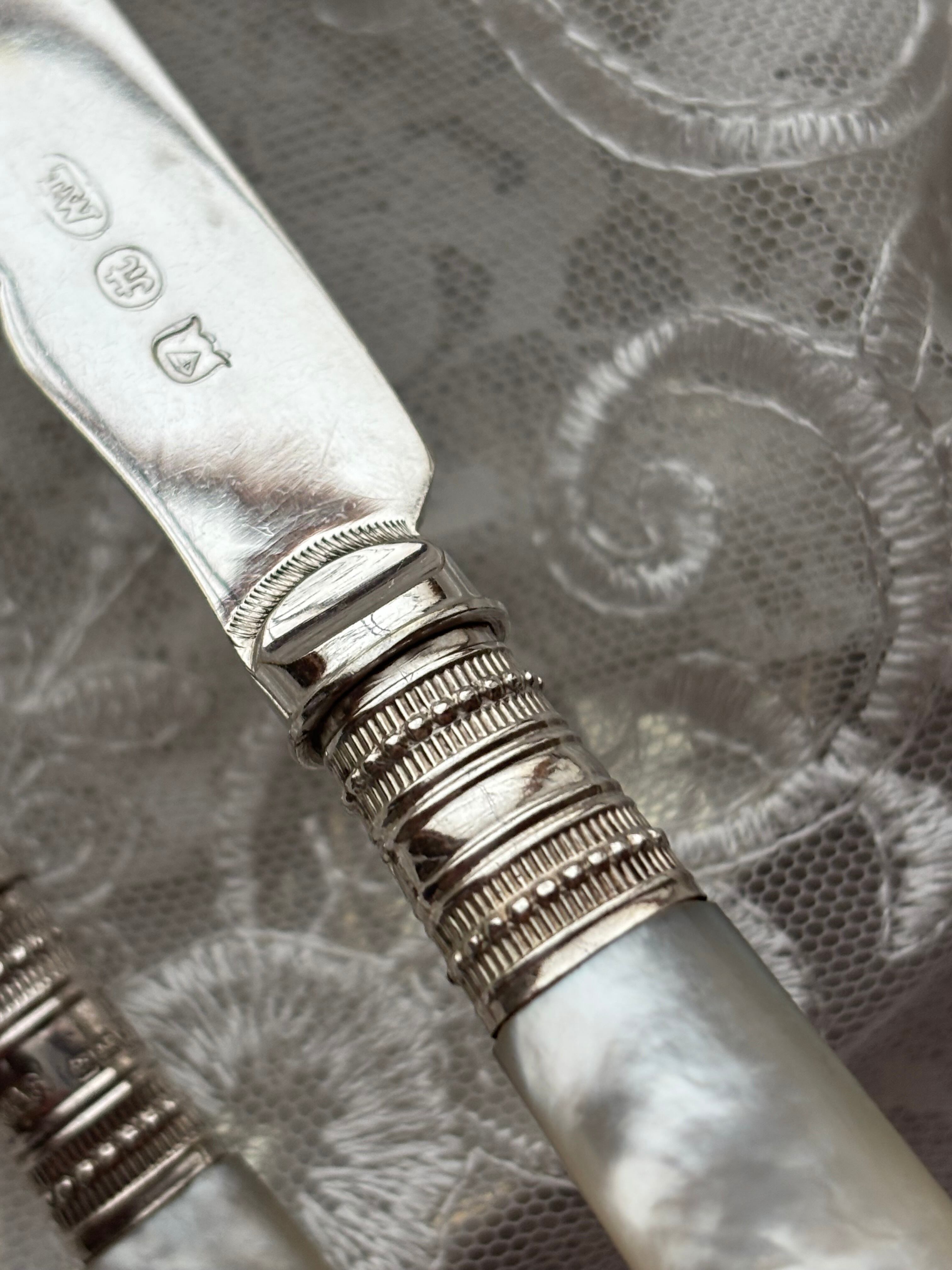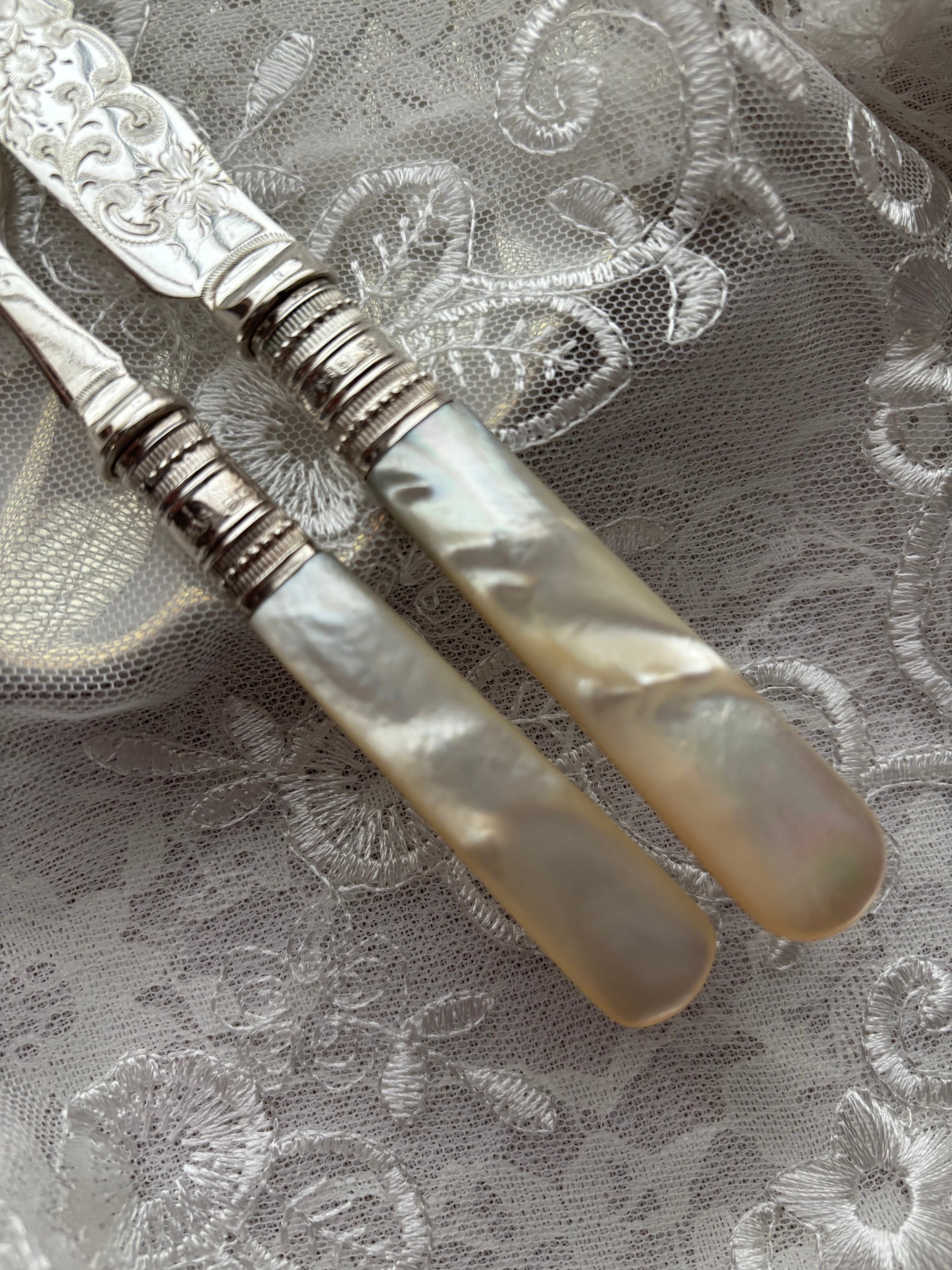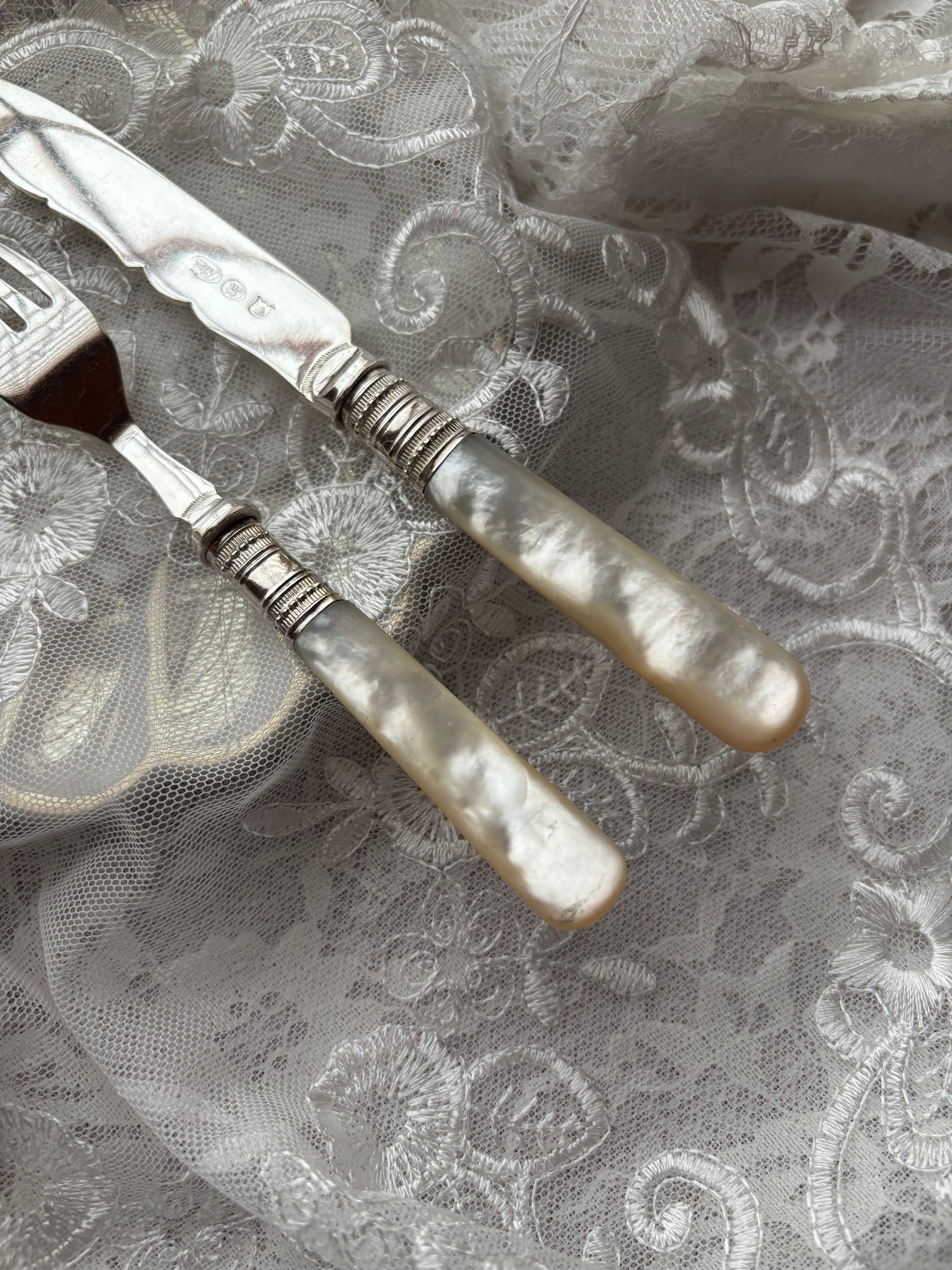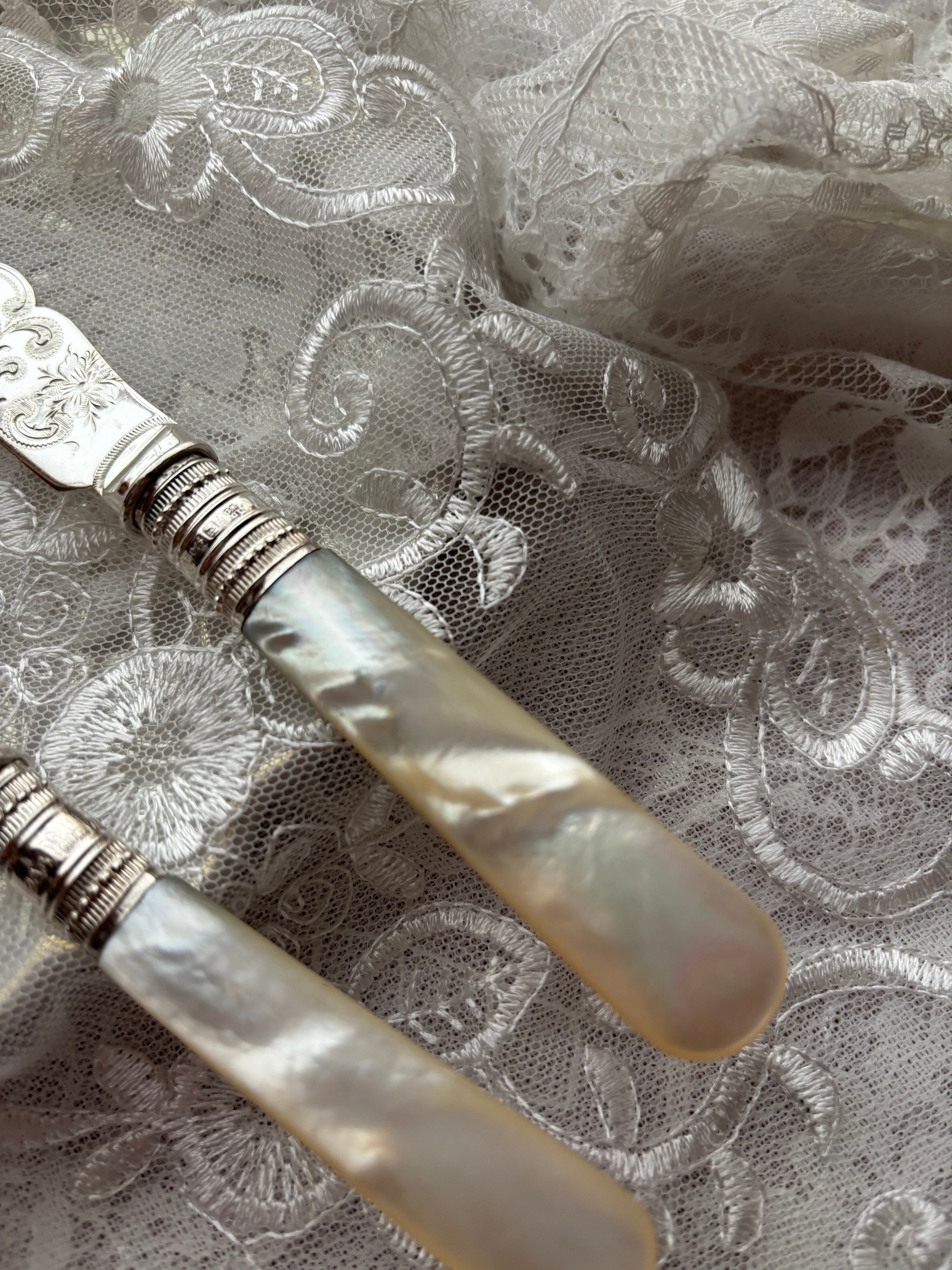 マザーオブパール 白蝶貝 純銀 デザートカトラリー フランス アンティーク