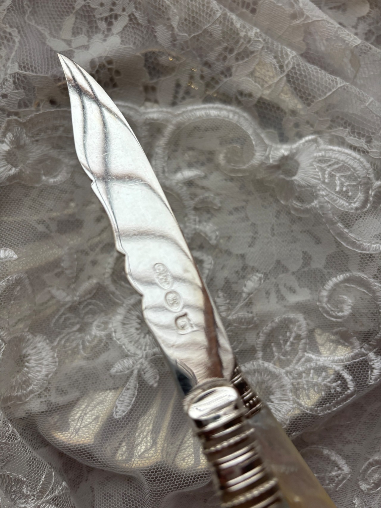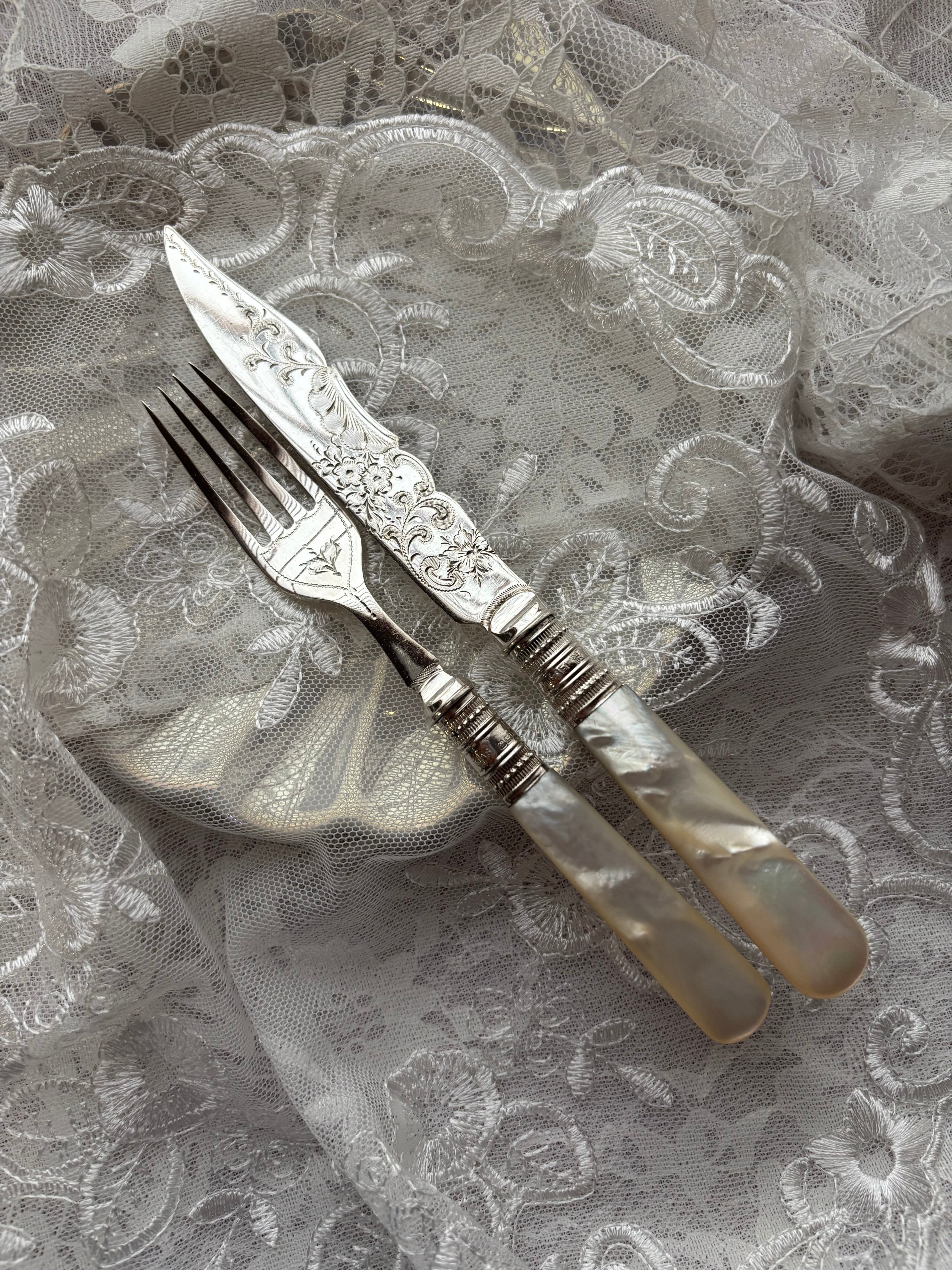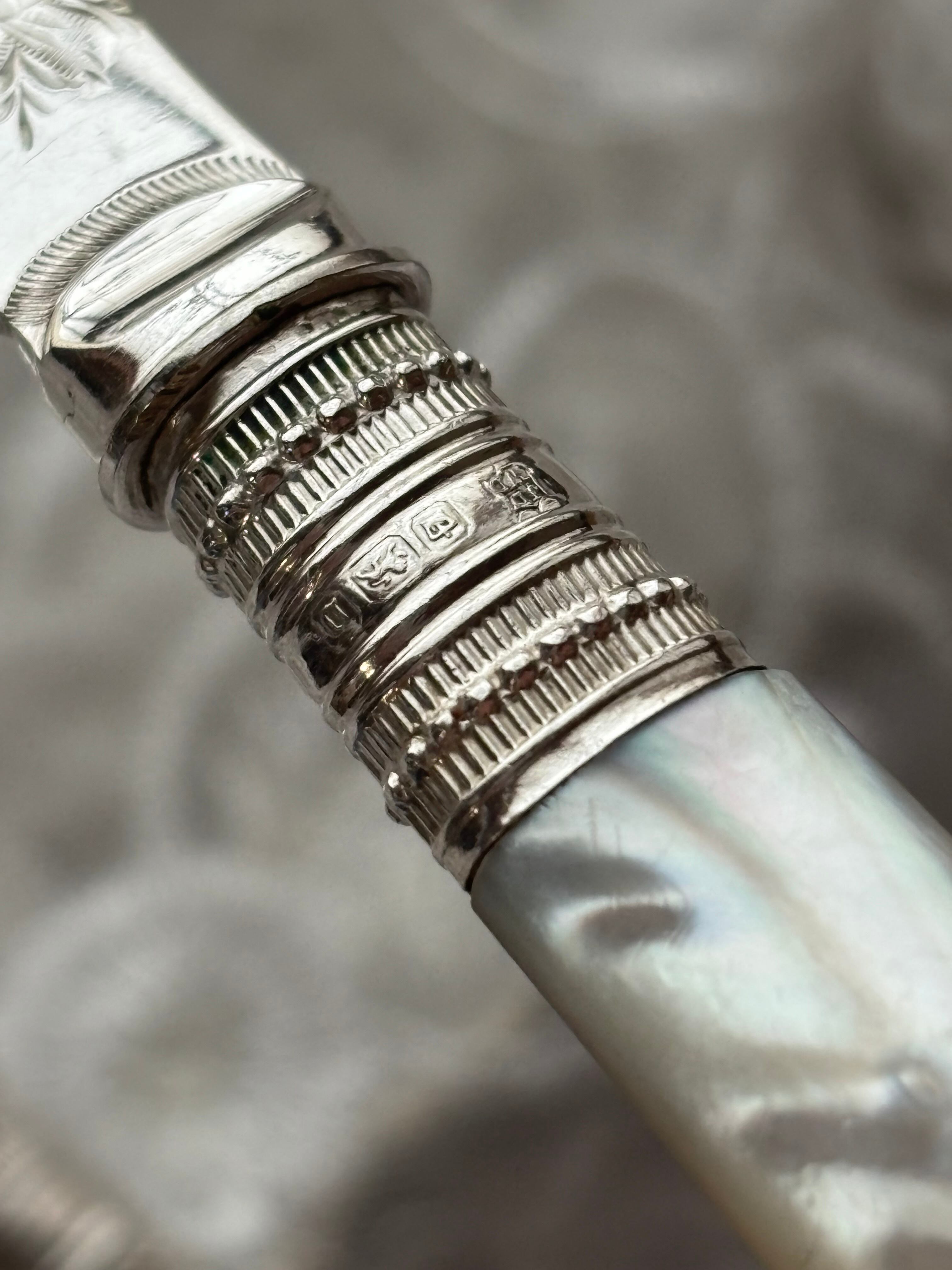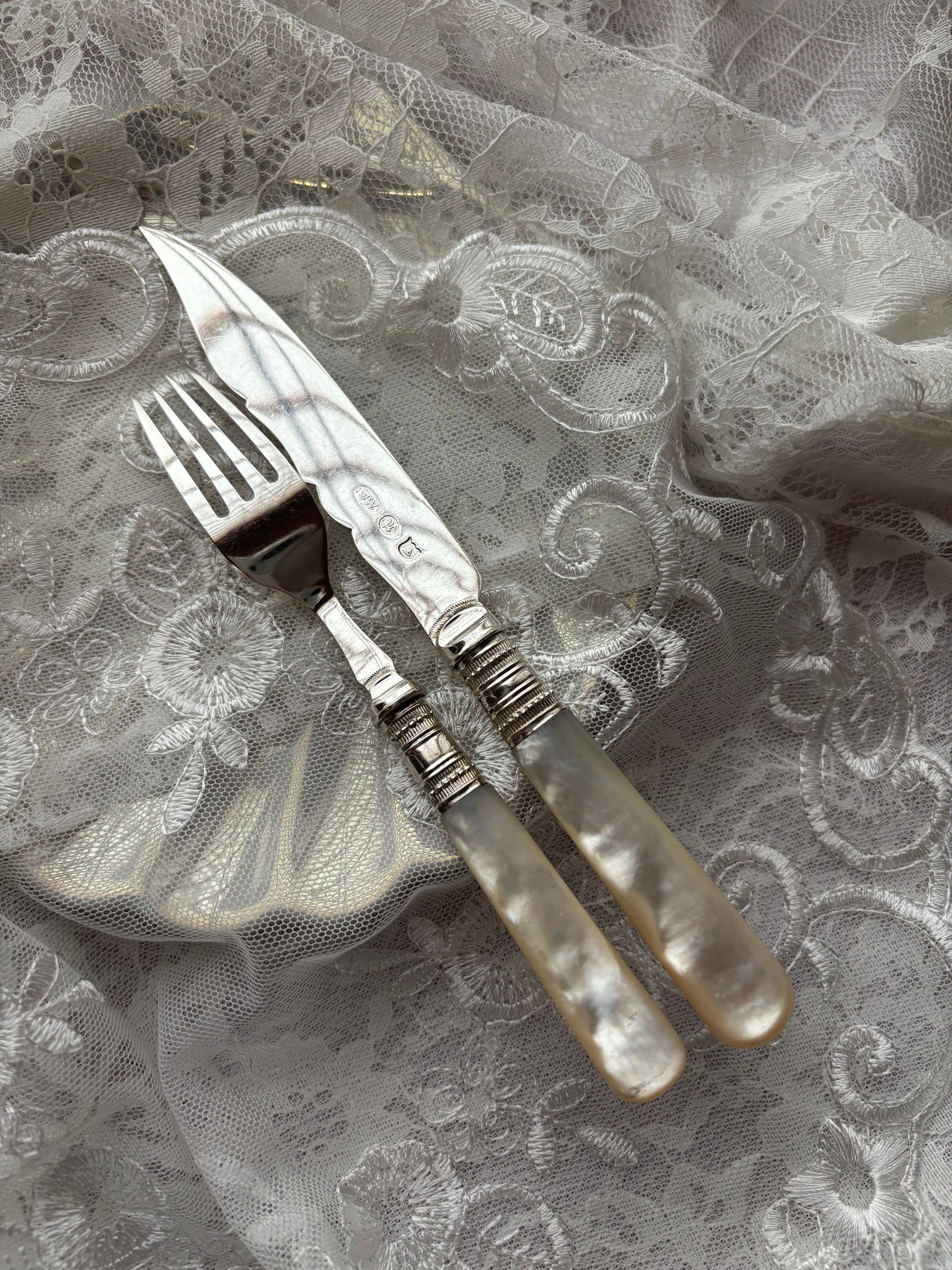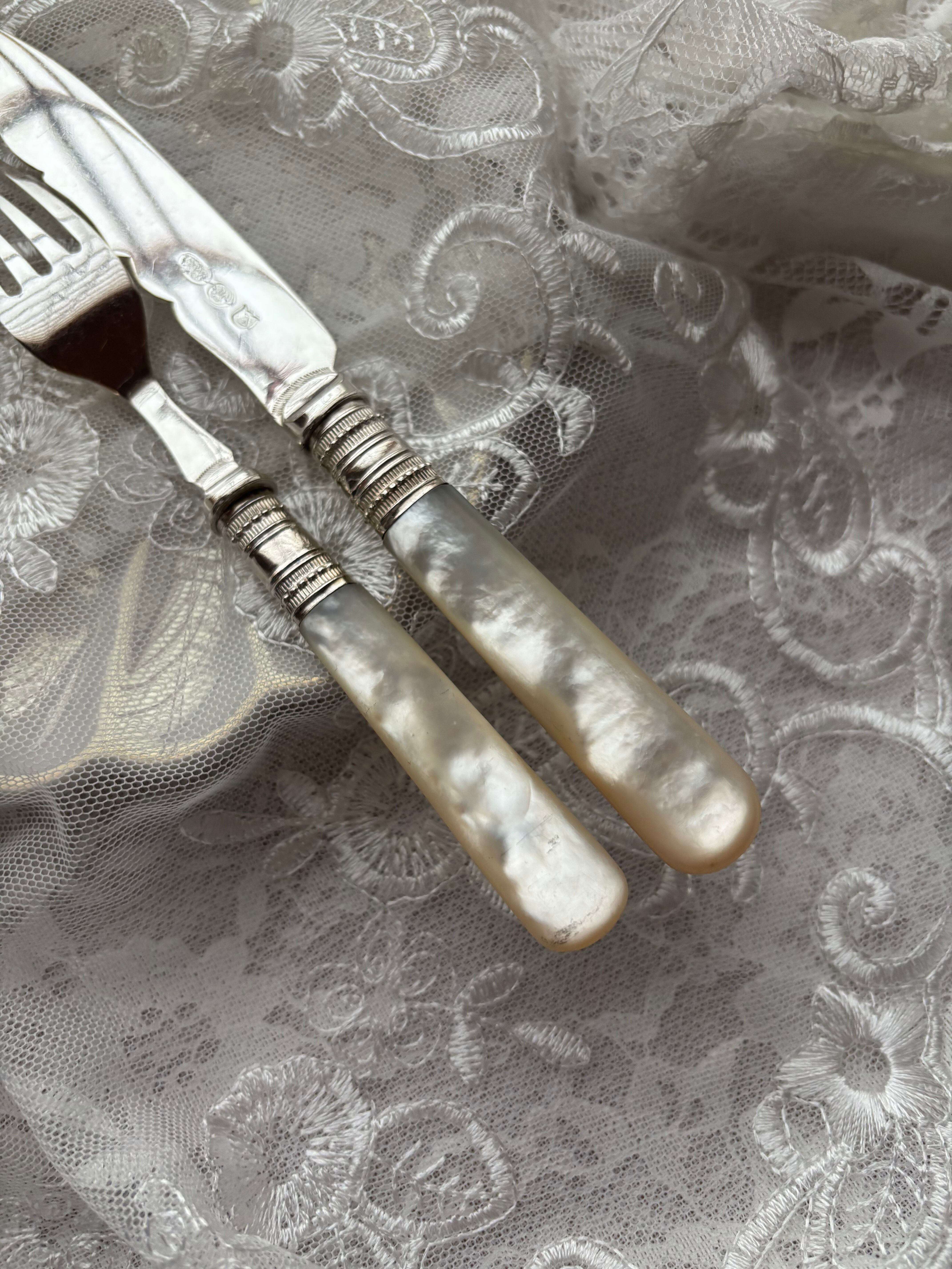 マザーオブパール 白蝶貝 純銀 デザートカトラリー フランス アンティーク
