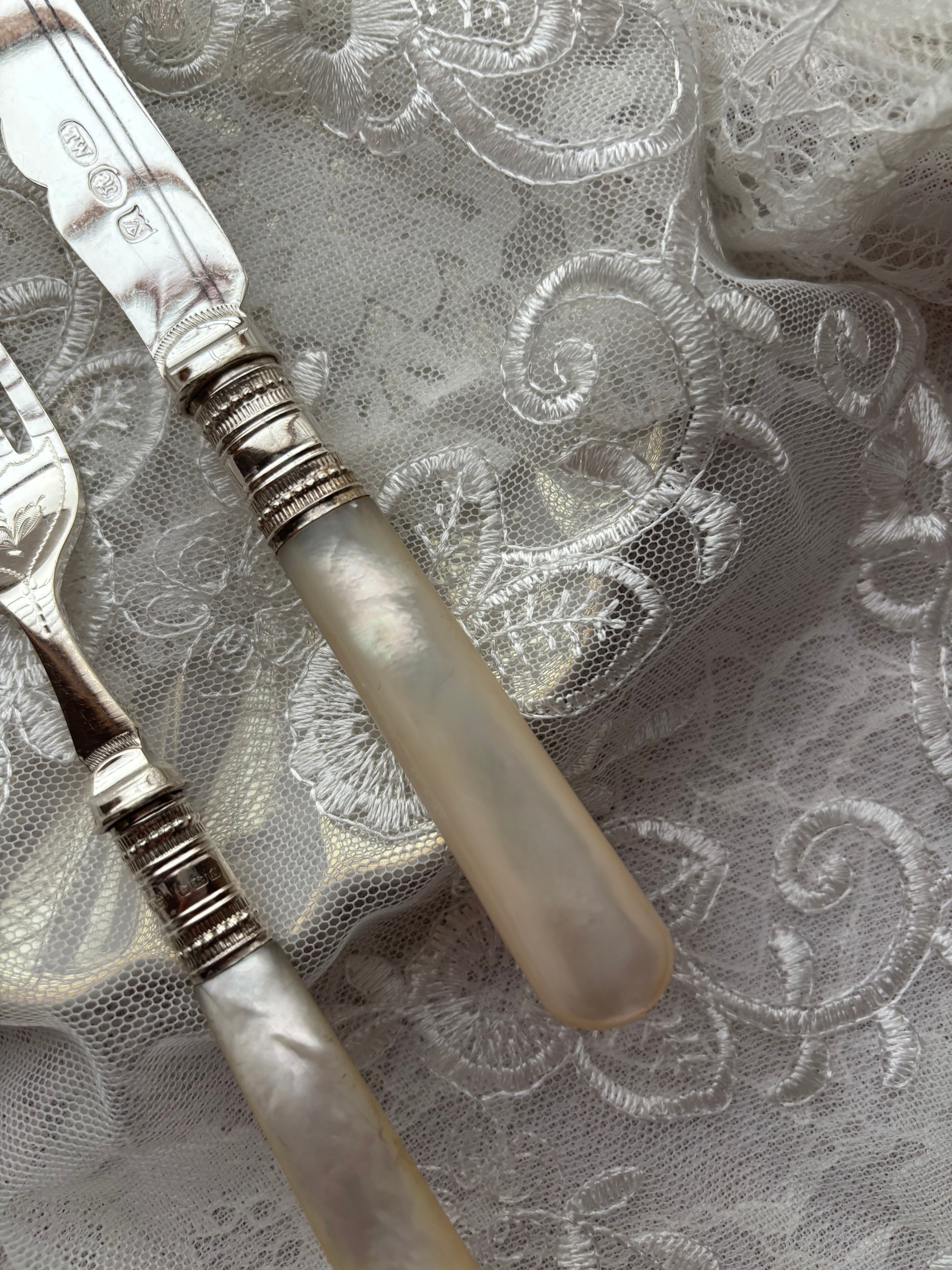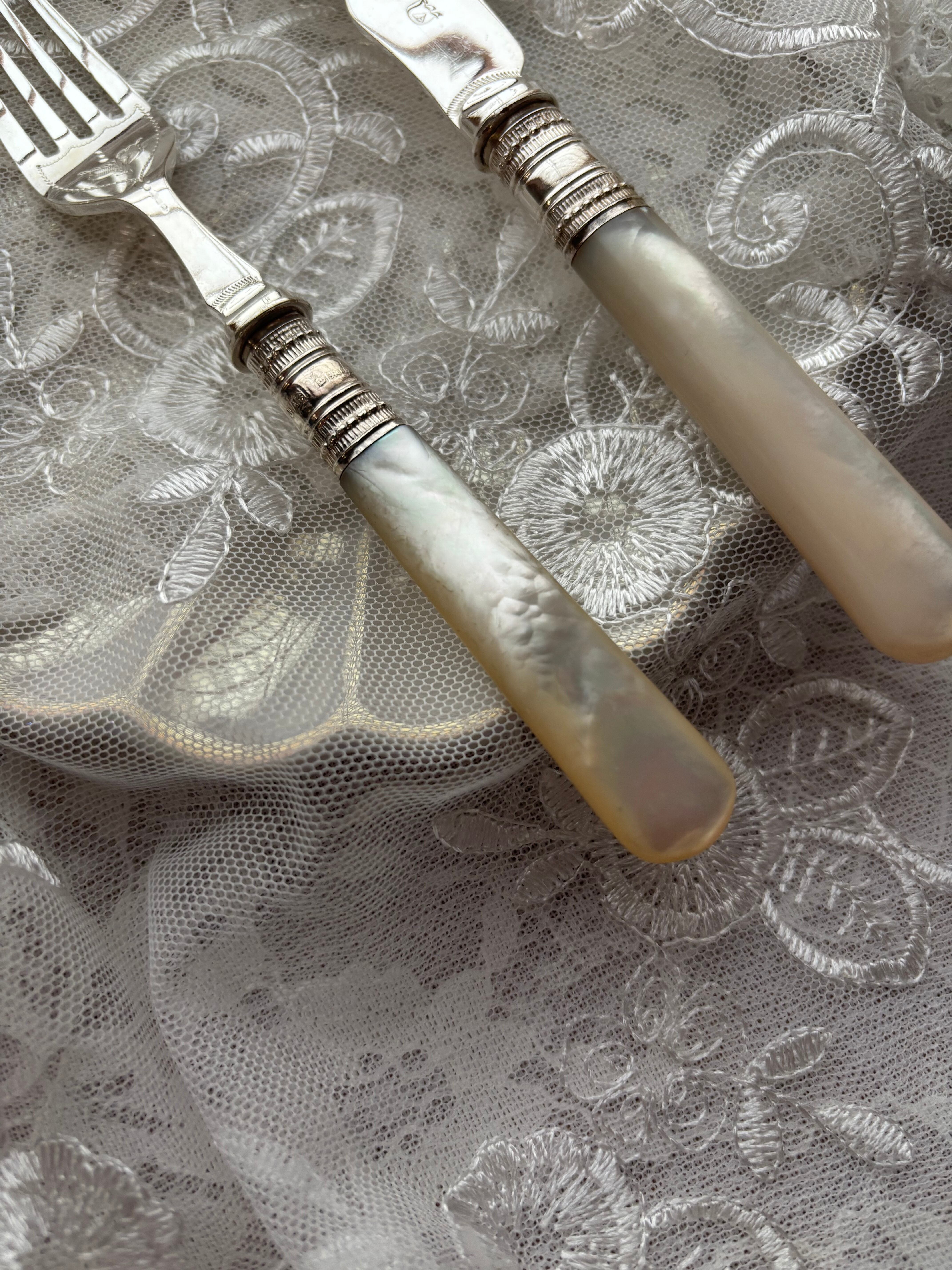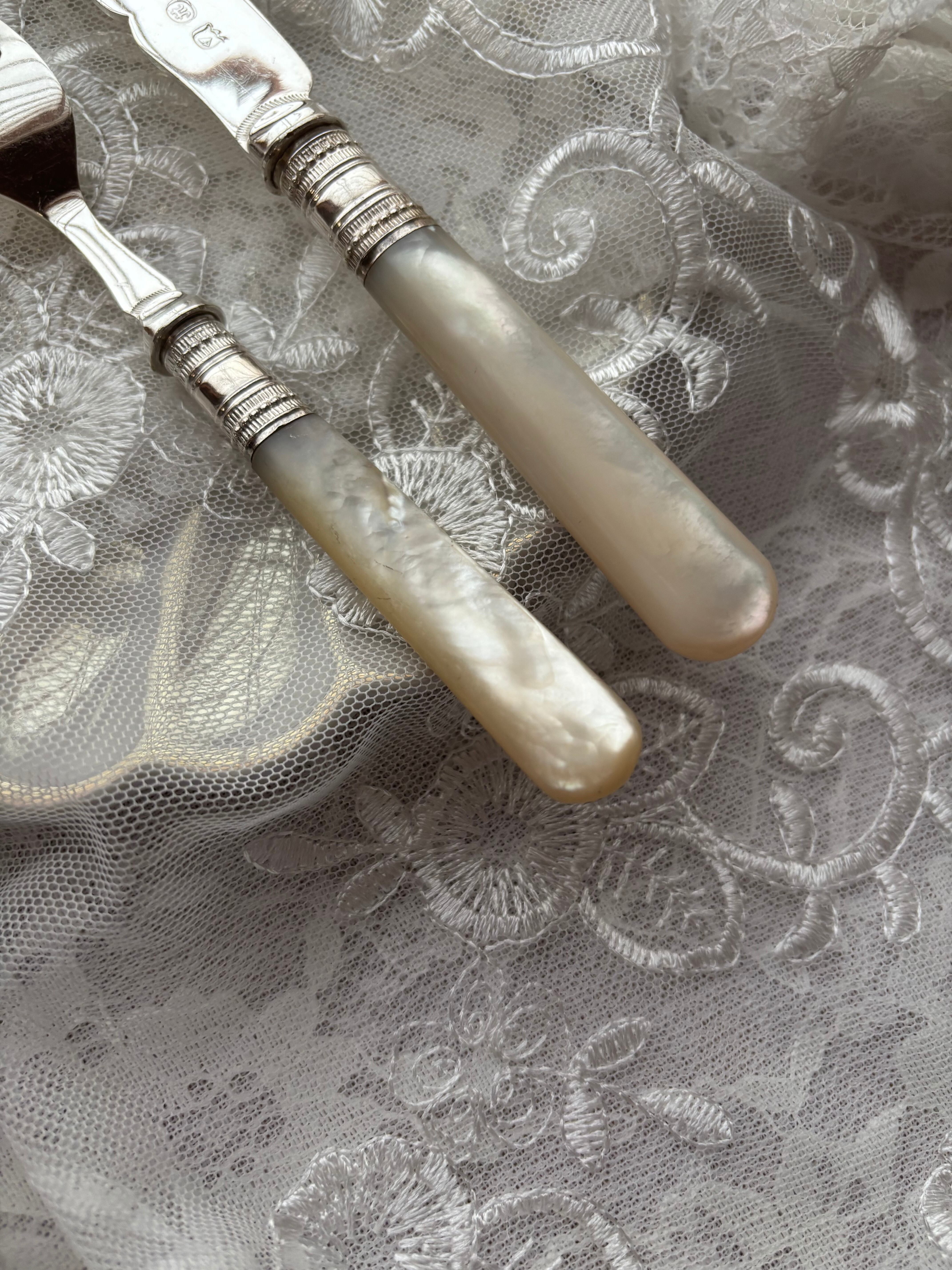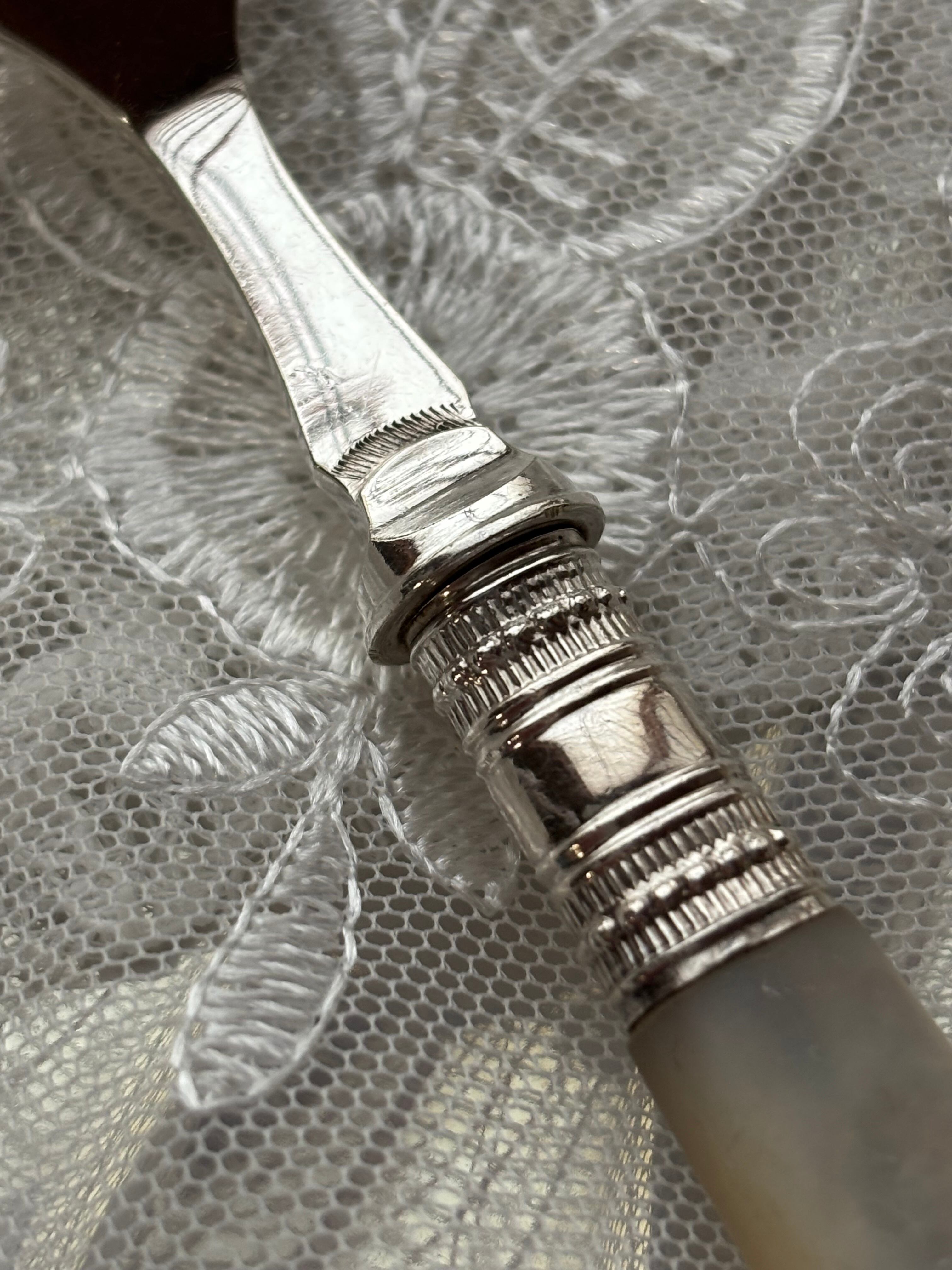 マザーオブパール 白蝶貝 純銀 デザートカトラリー フランス アンティーク