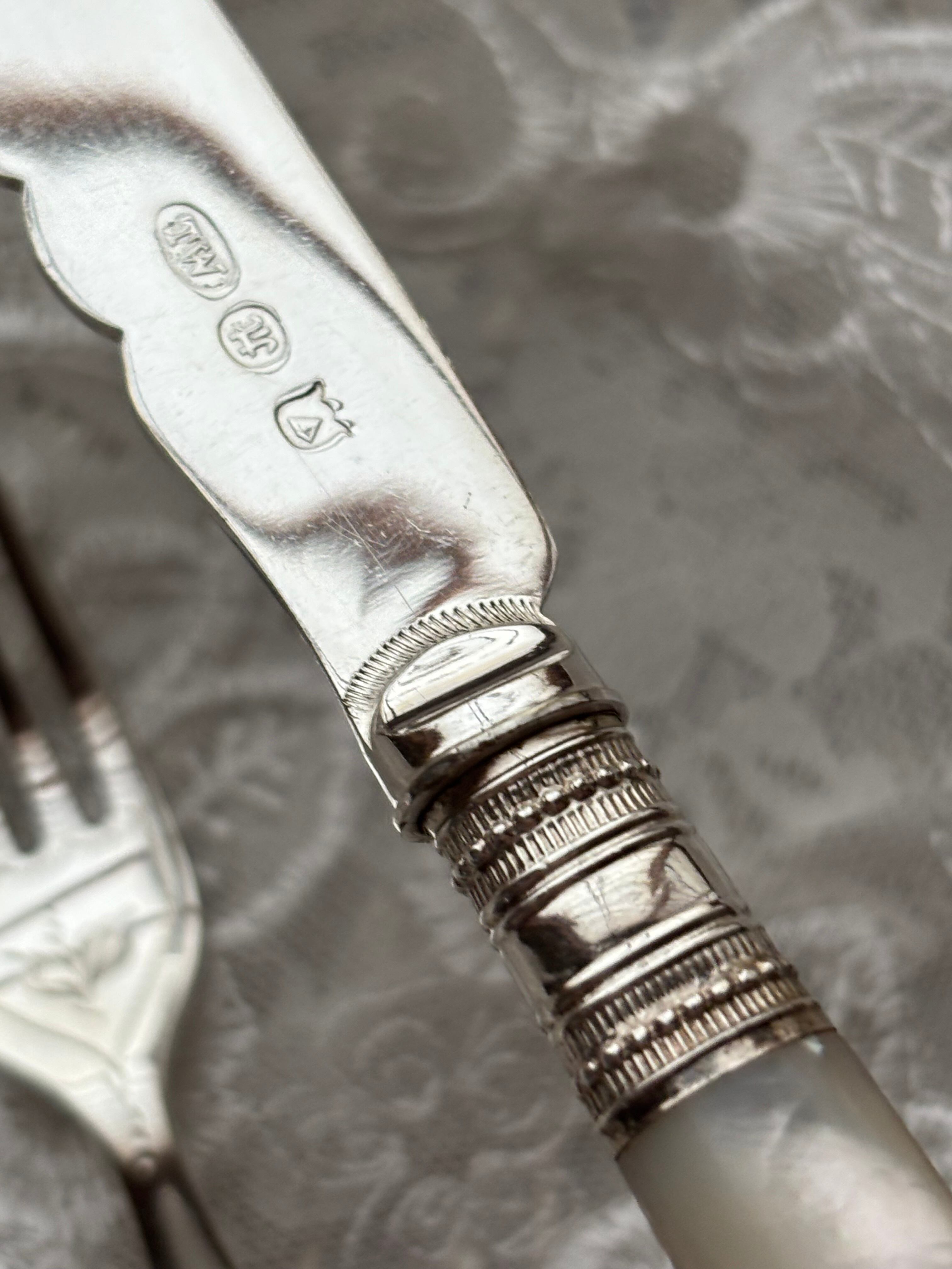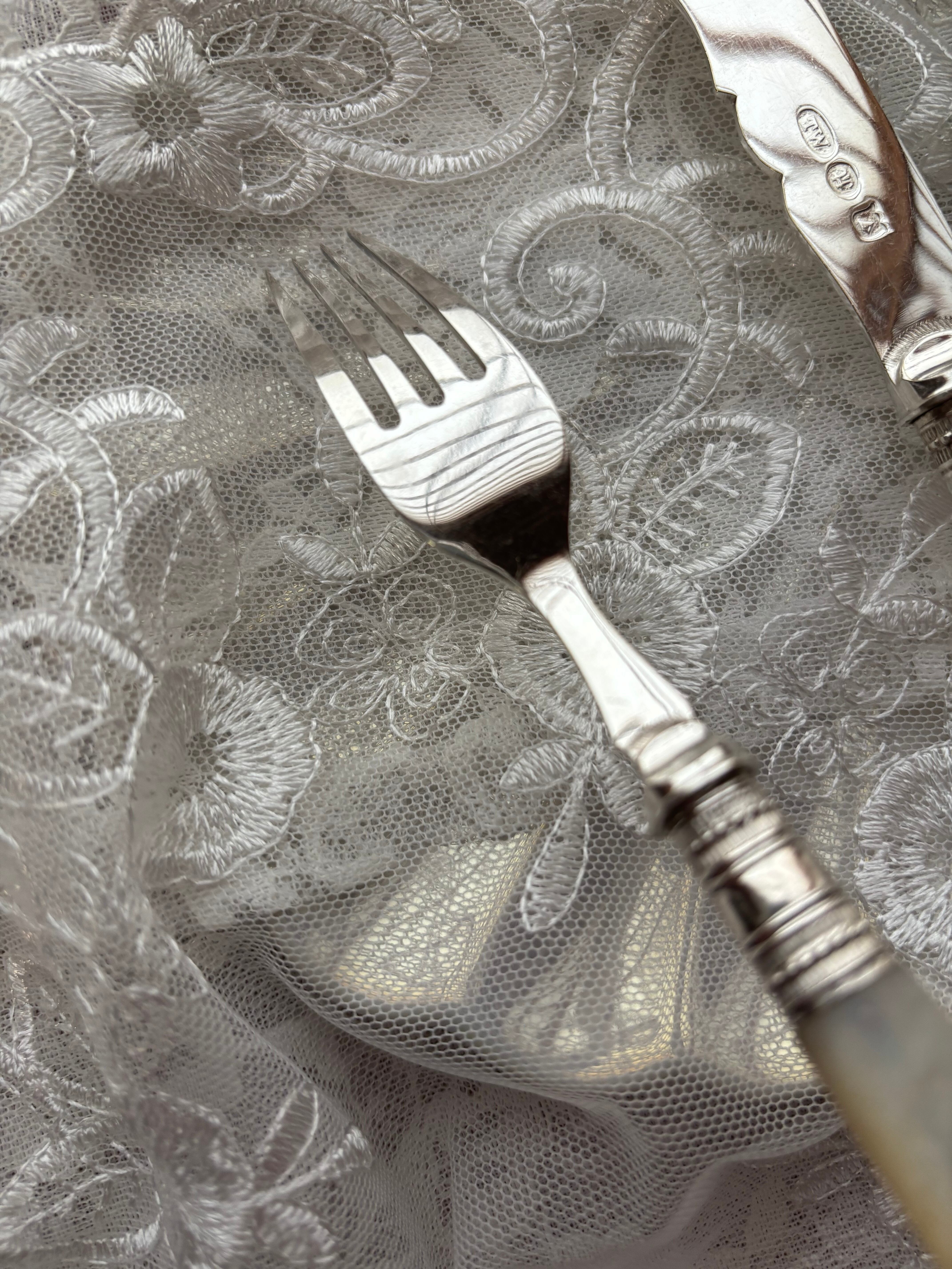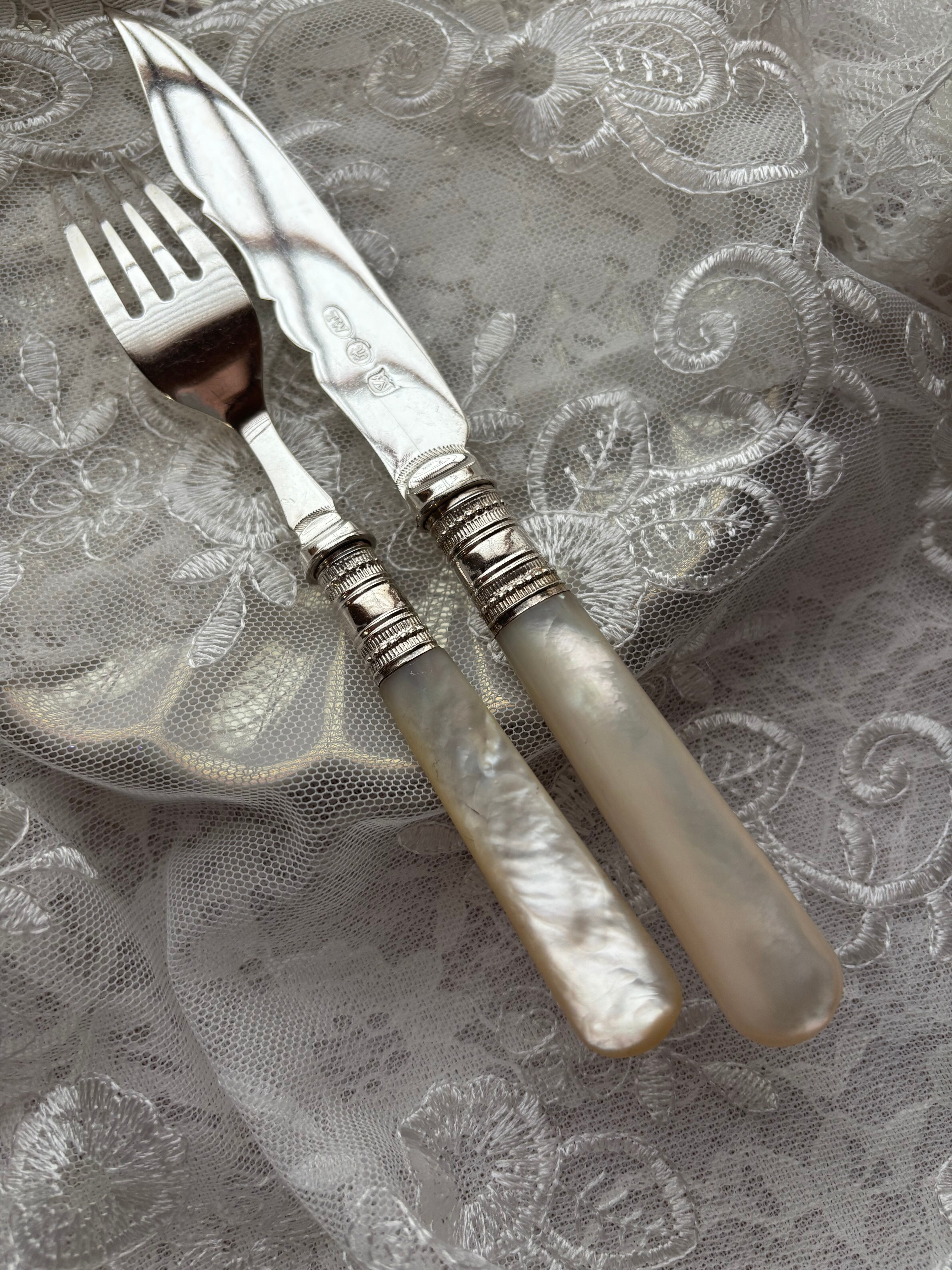 マザーオブパール 白蝶貝 純銀 デザートカトラリー フランス アンティーク