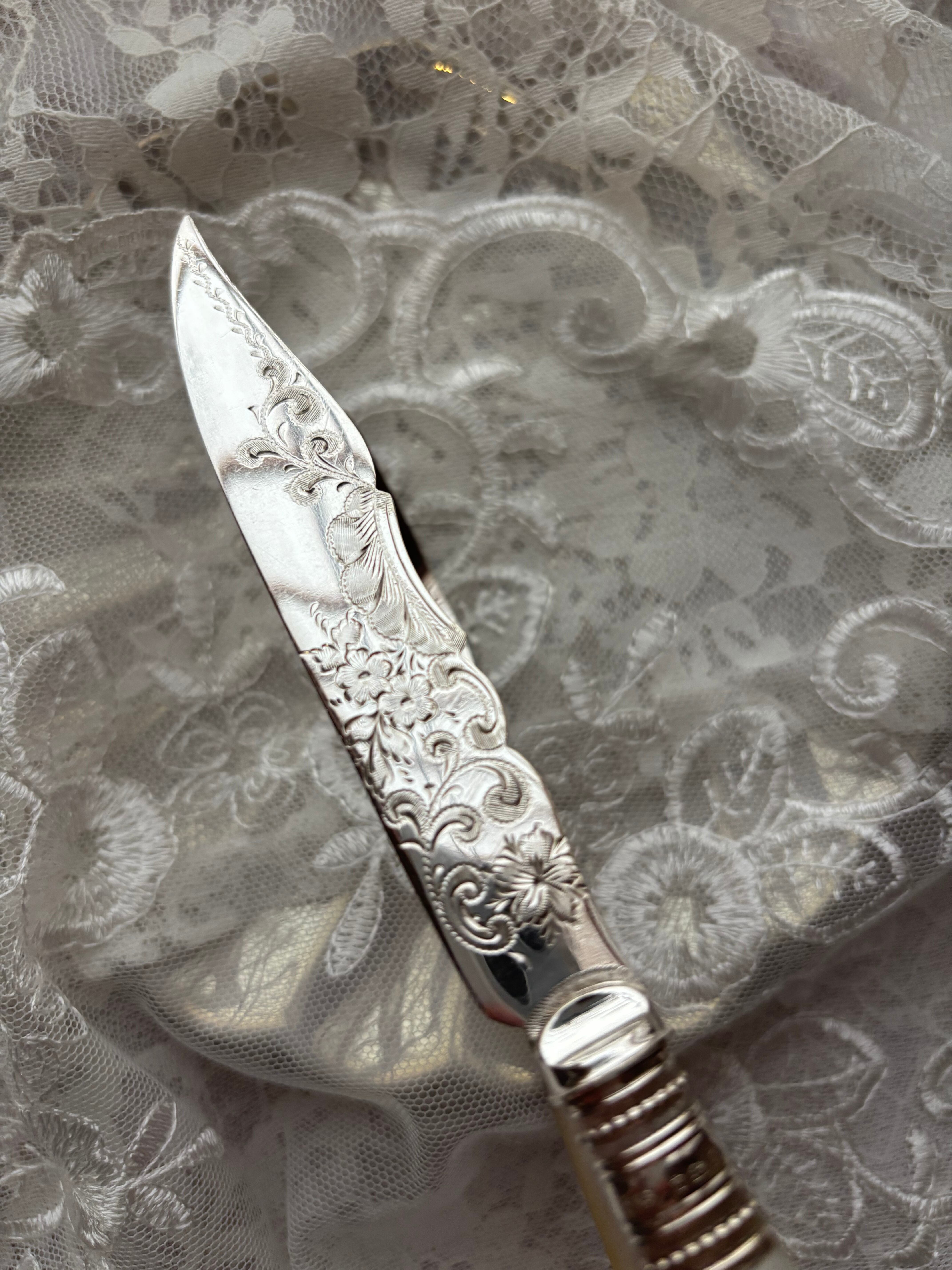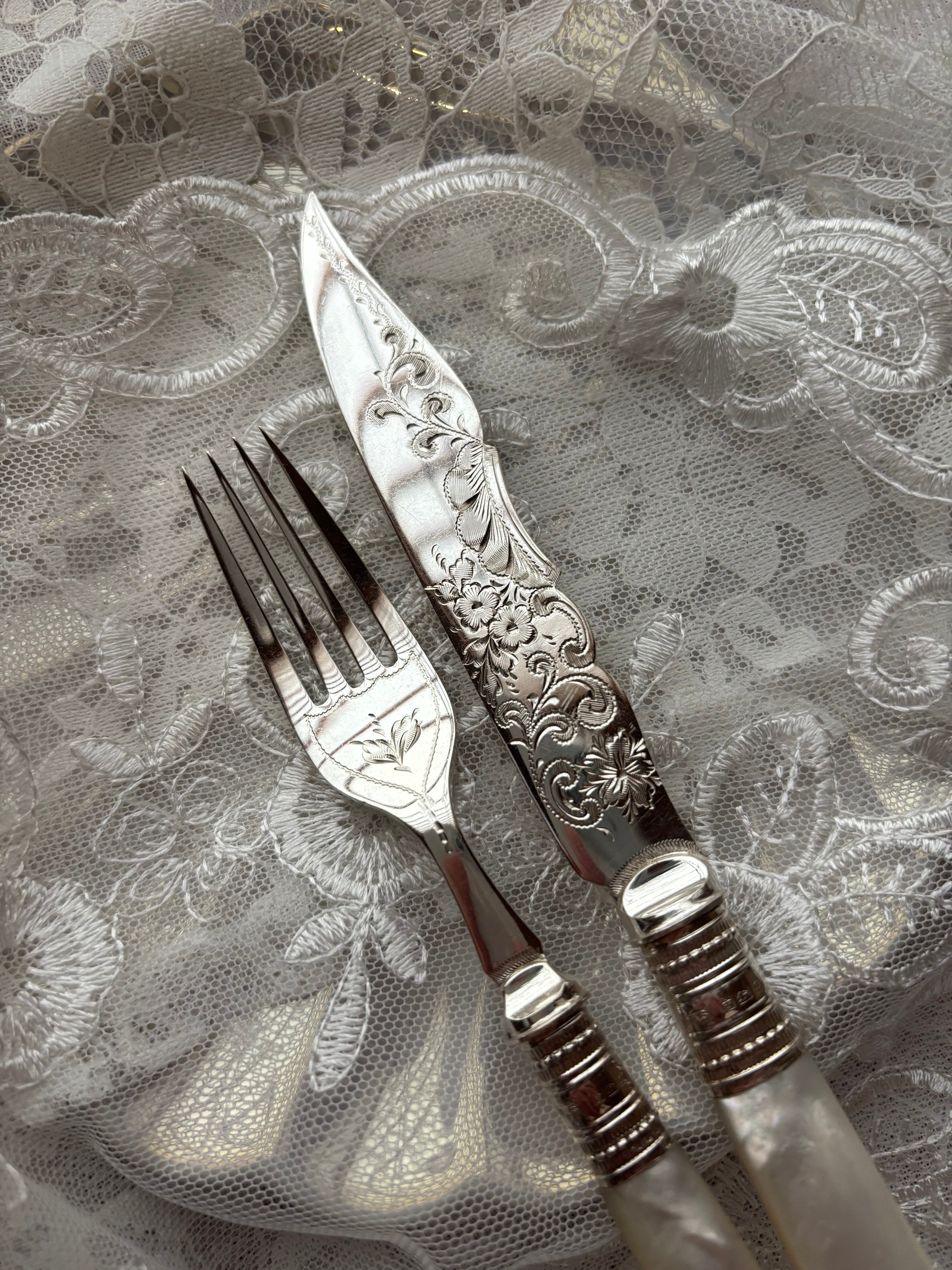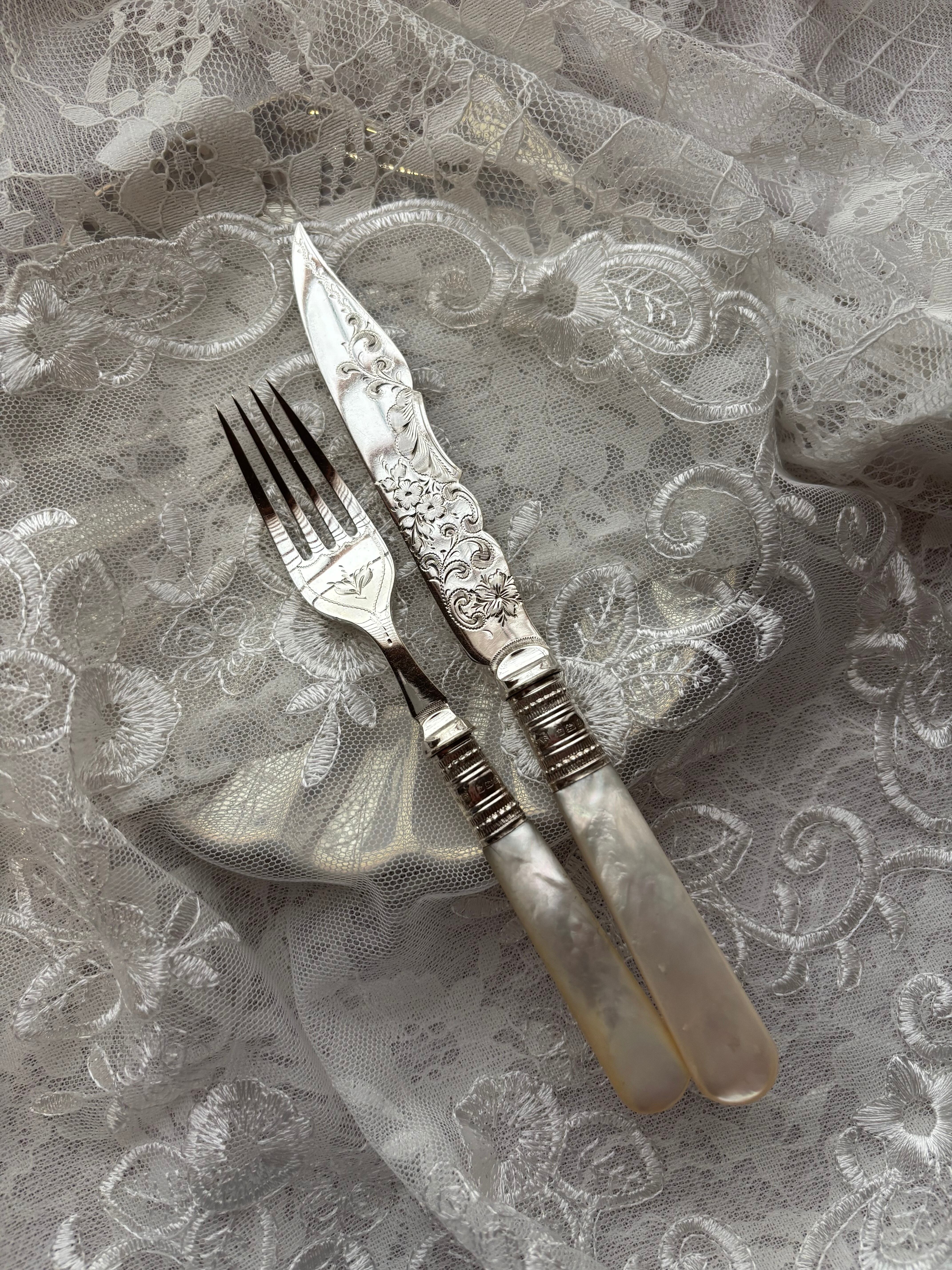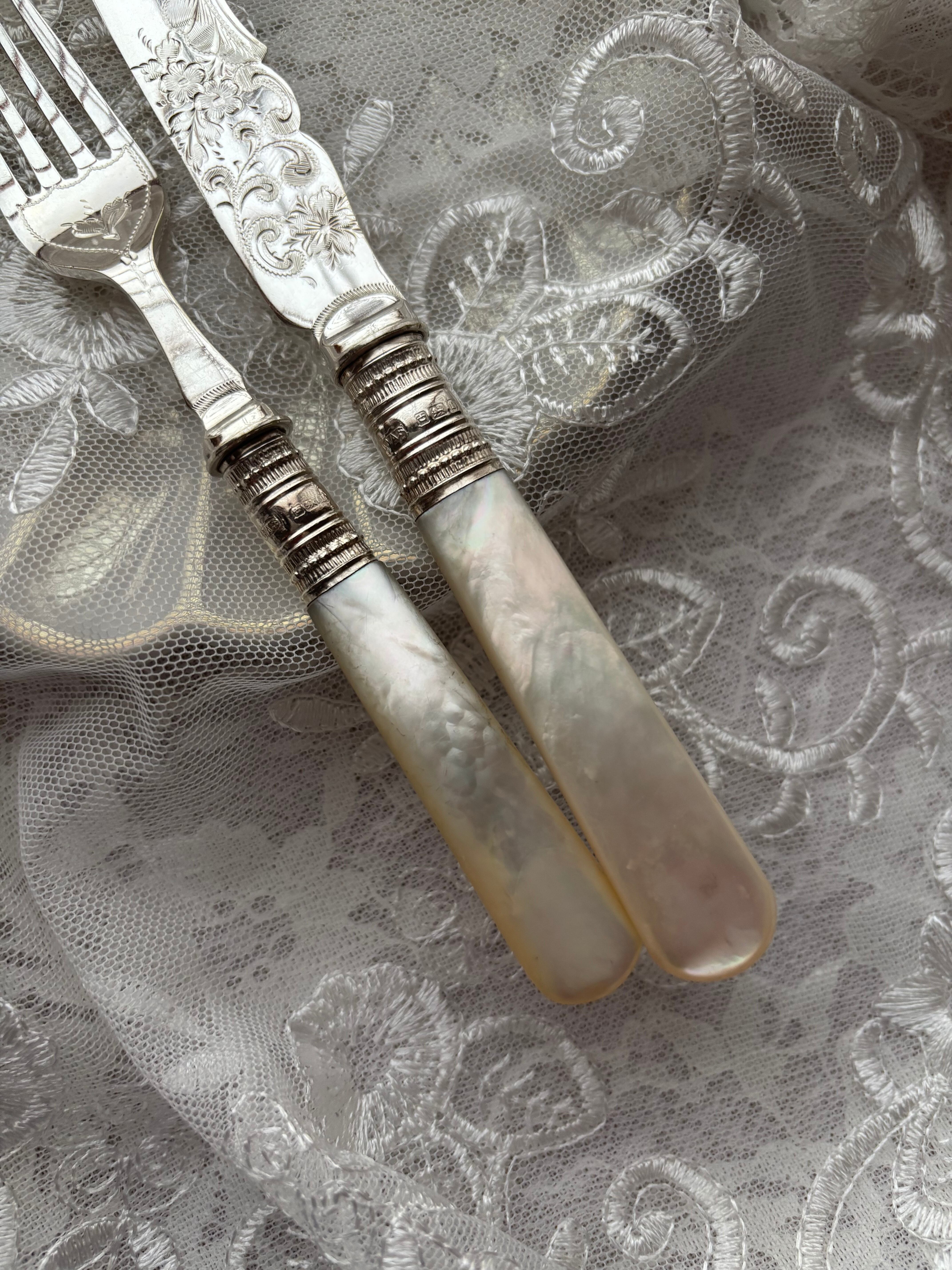 マザーオブパール 白蝶貝 純銀 デザートカトラリー フランス アンティーク