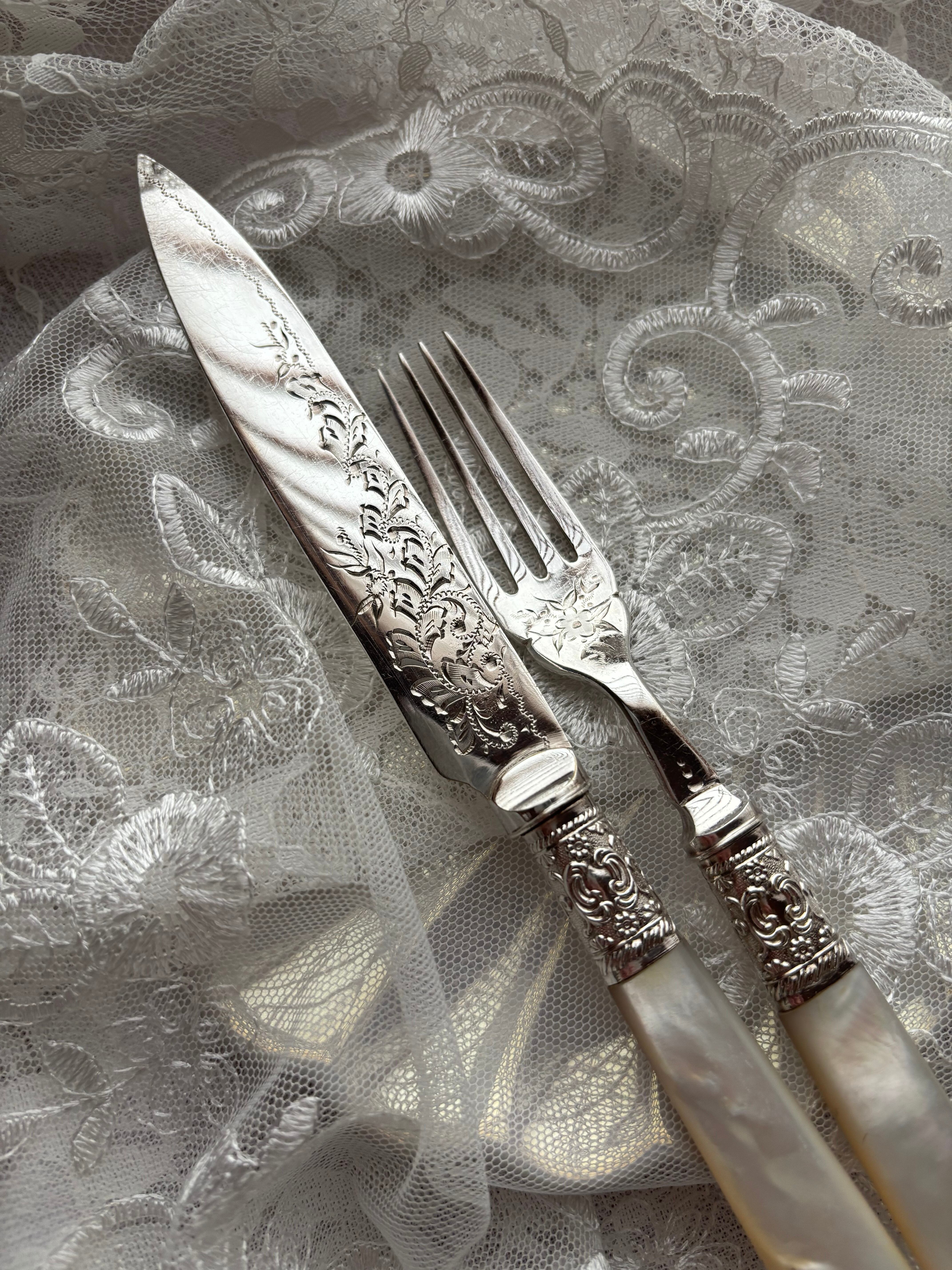 マザーオブパールハンドル 白蝶貝 フォーク&ナイフ セット フランス アンティーク