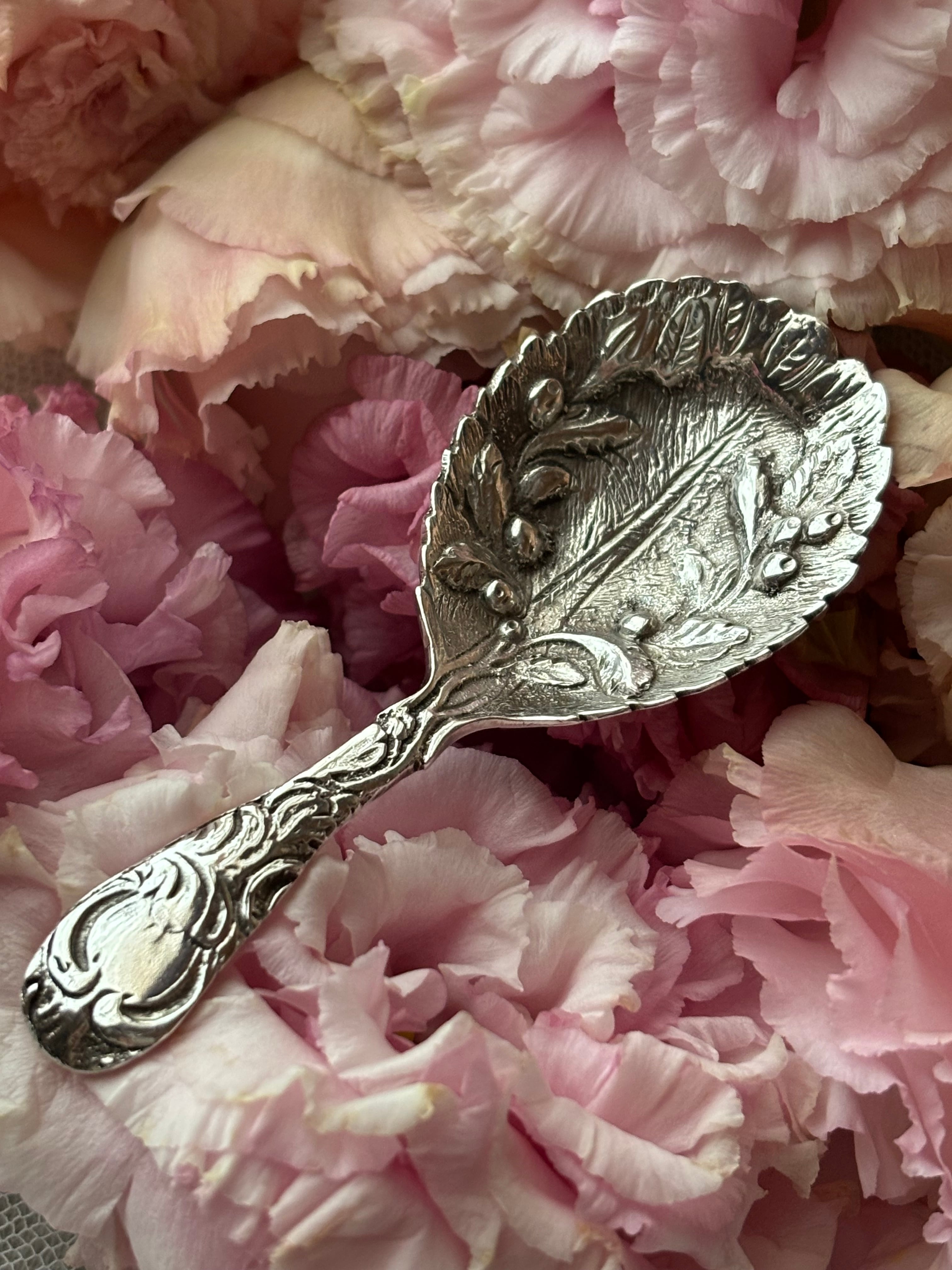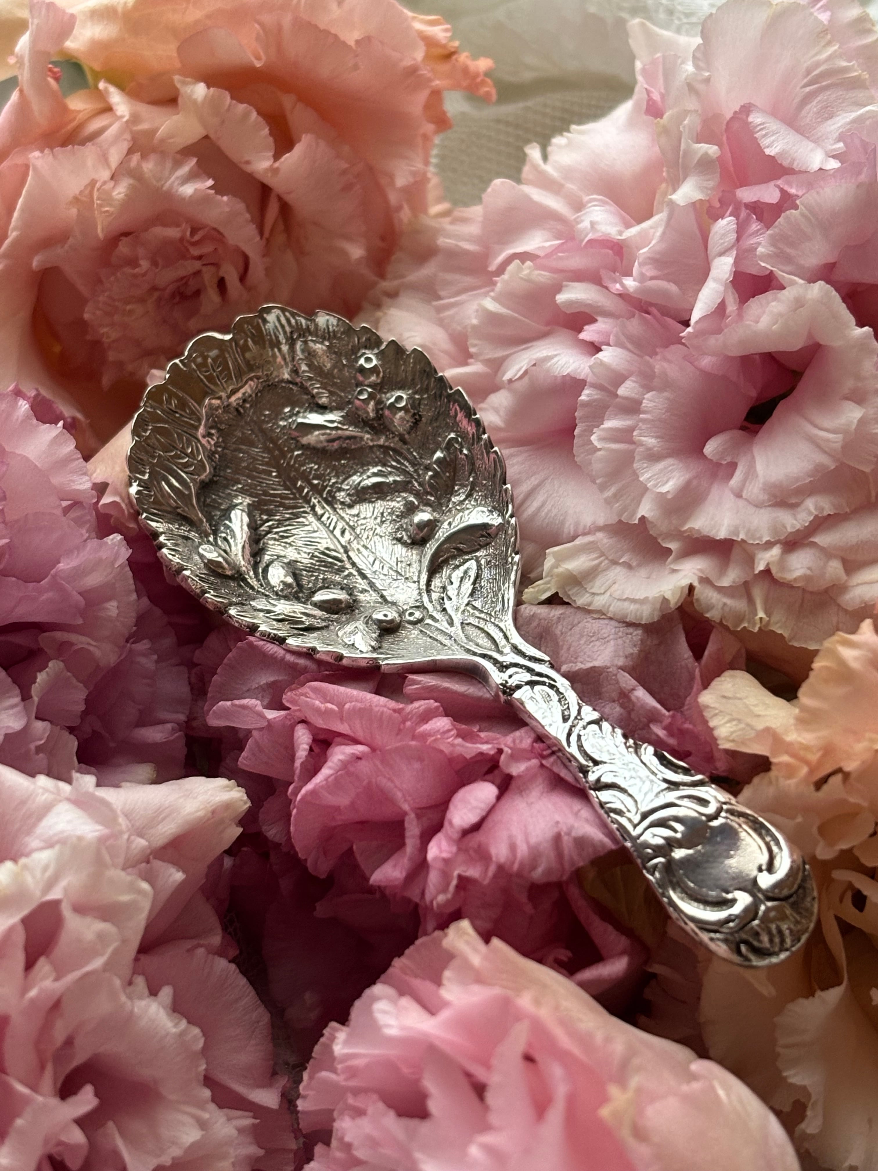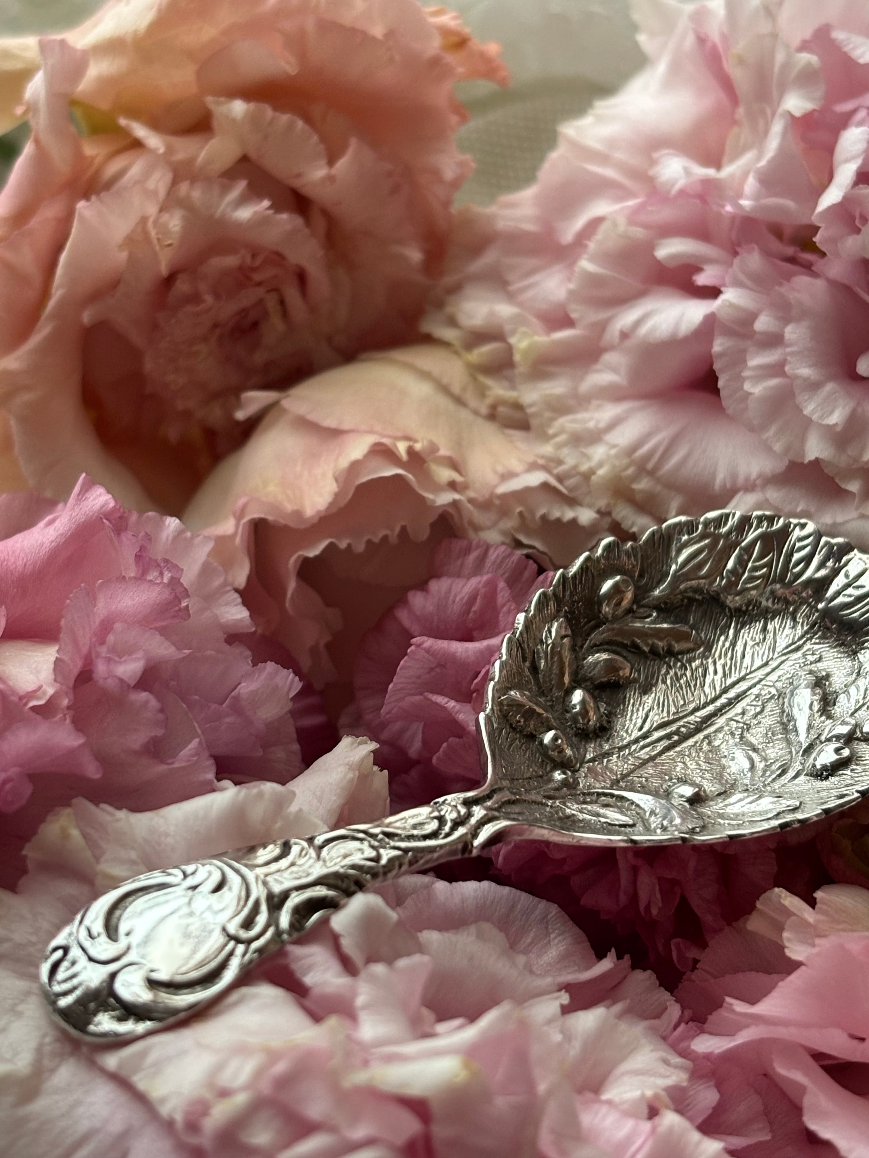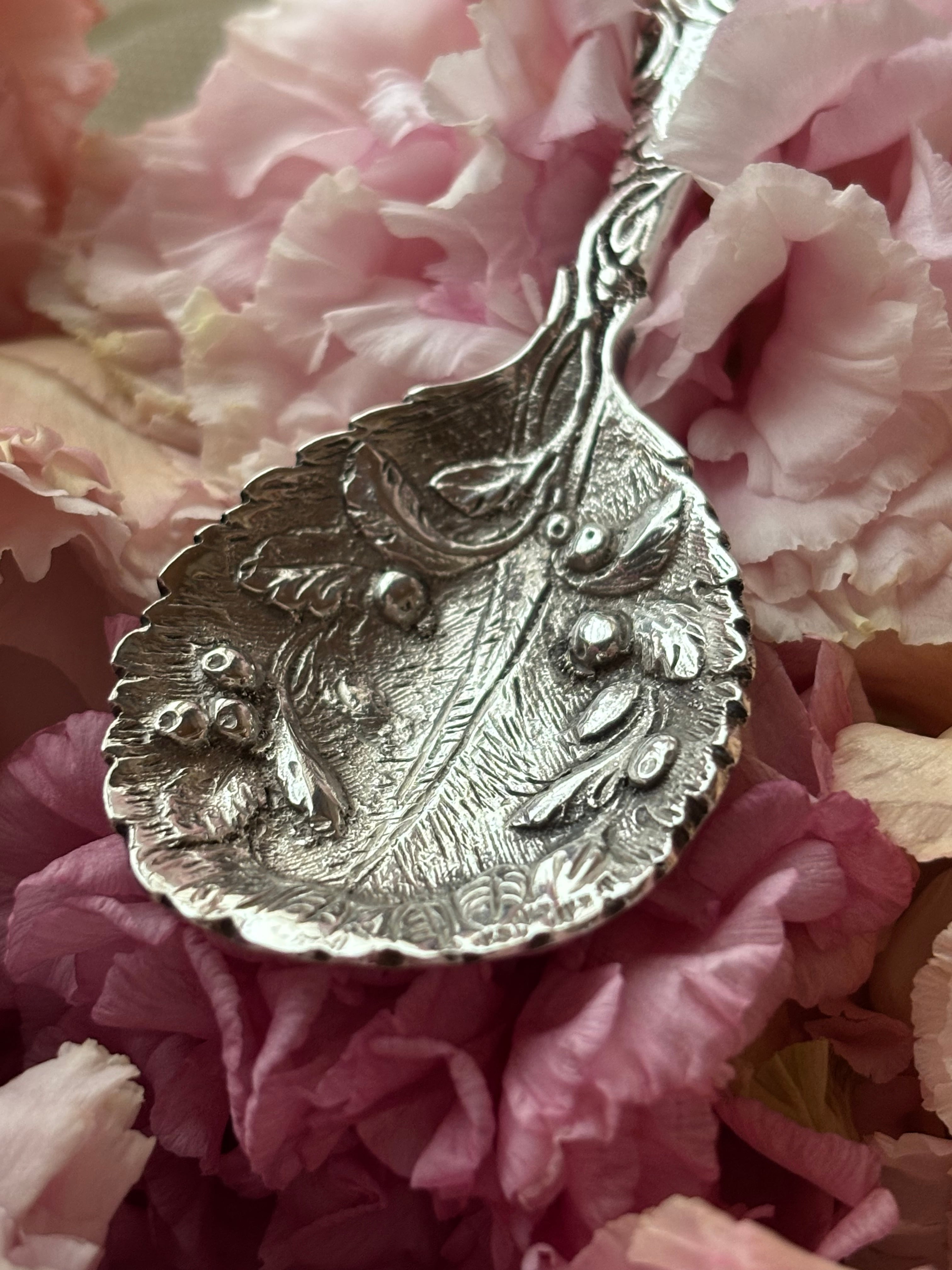 英国製 スターリングシルバー キャディスプーン オリーブ装飾 シェフィールド 1987年