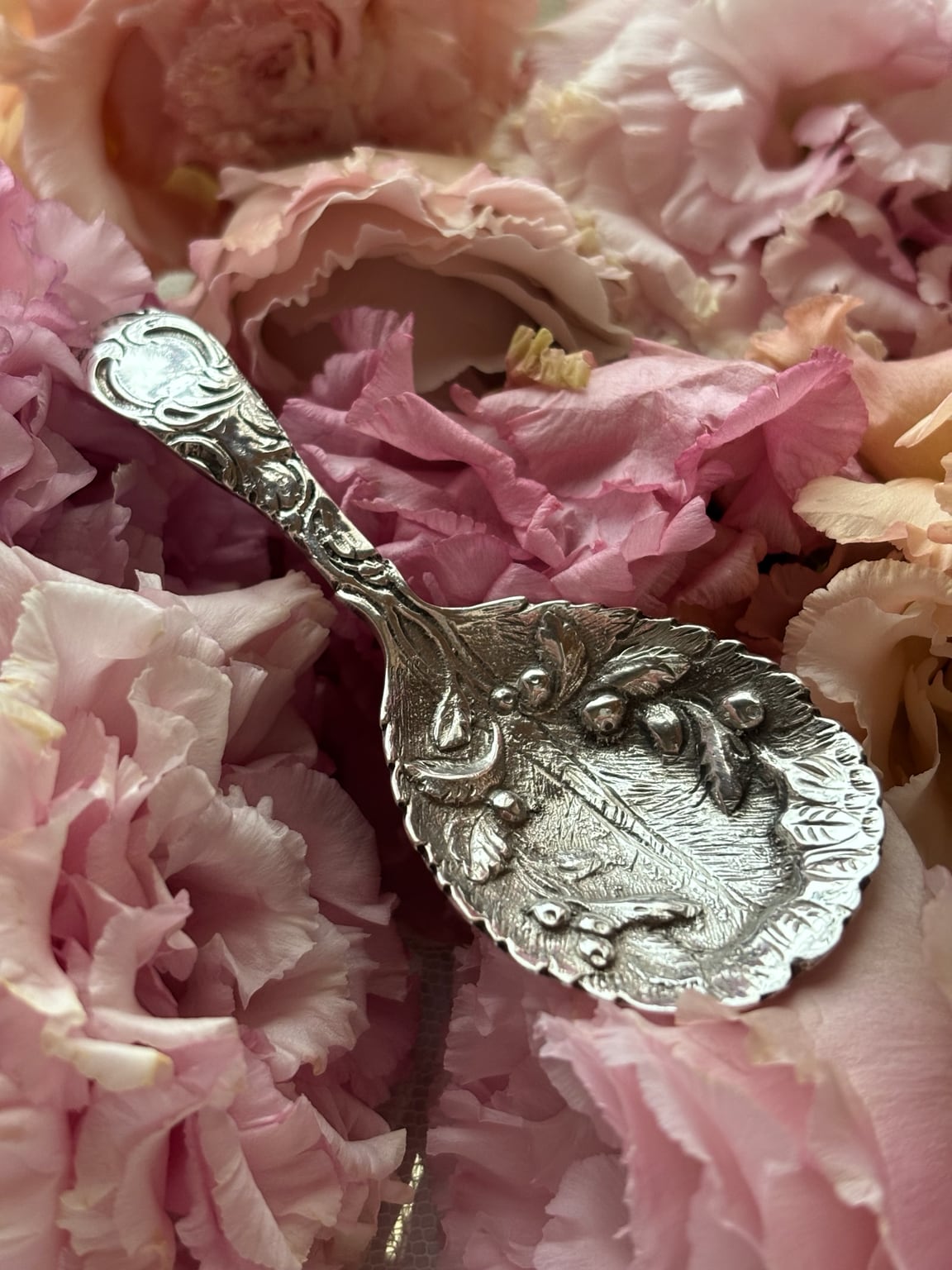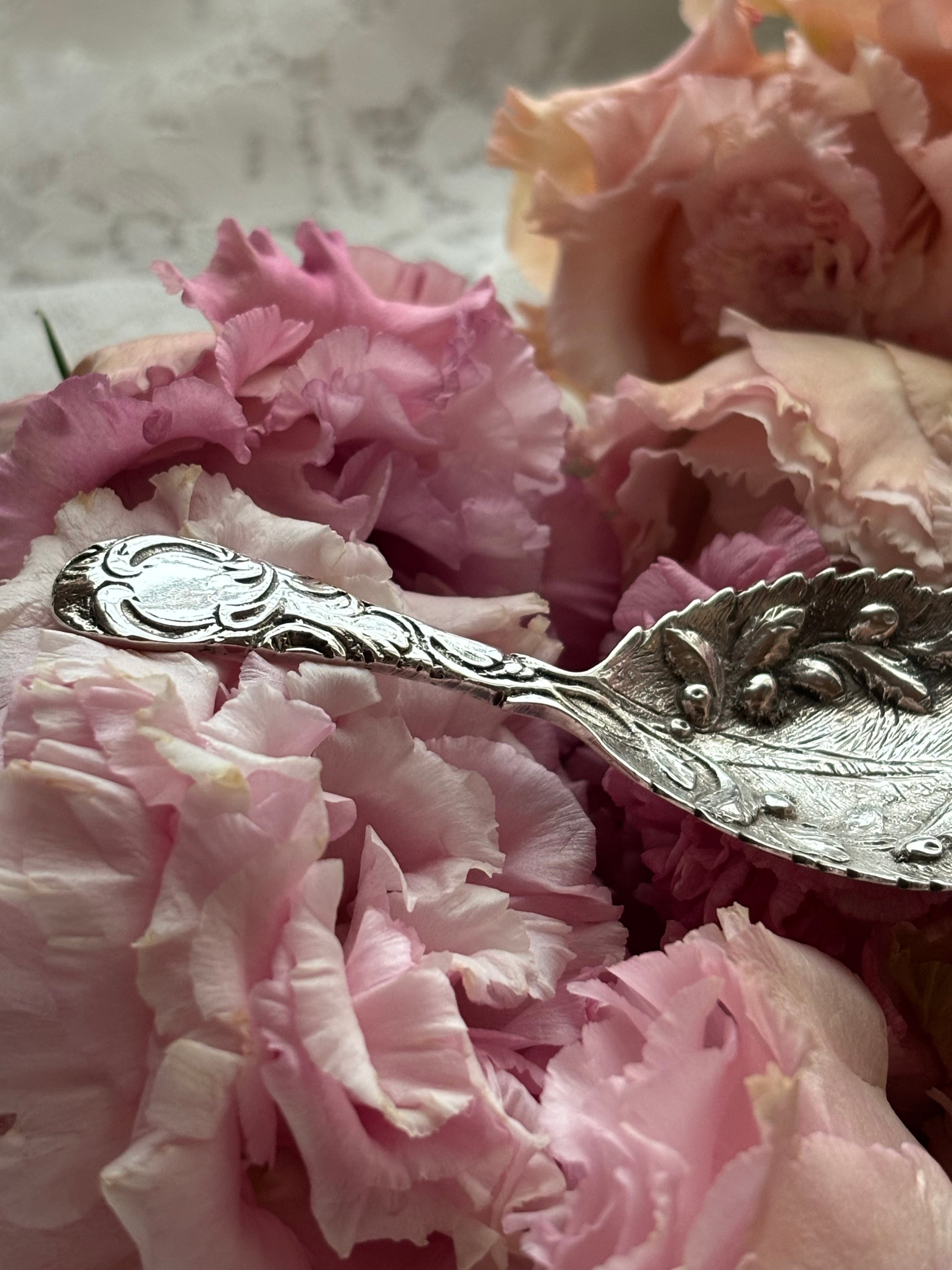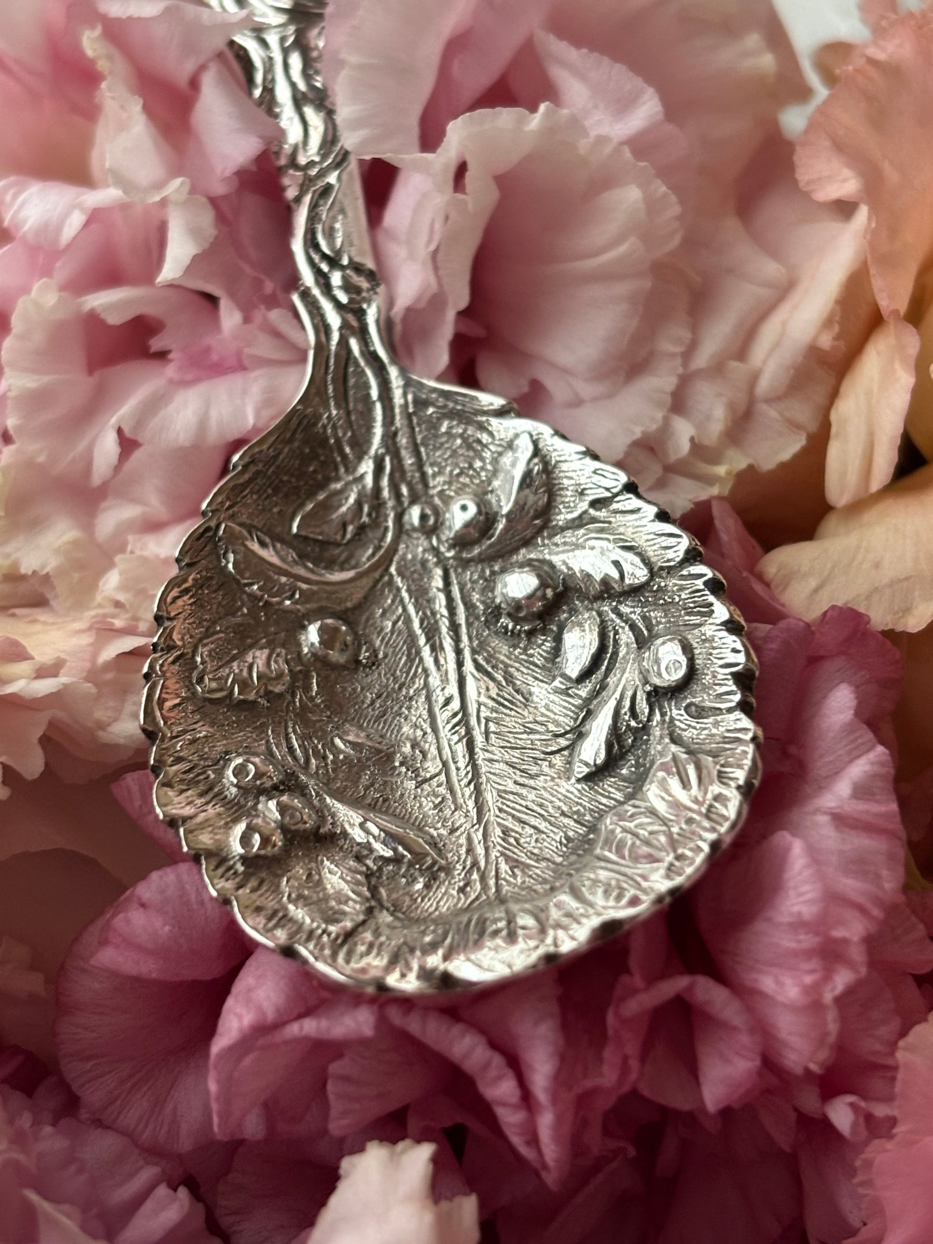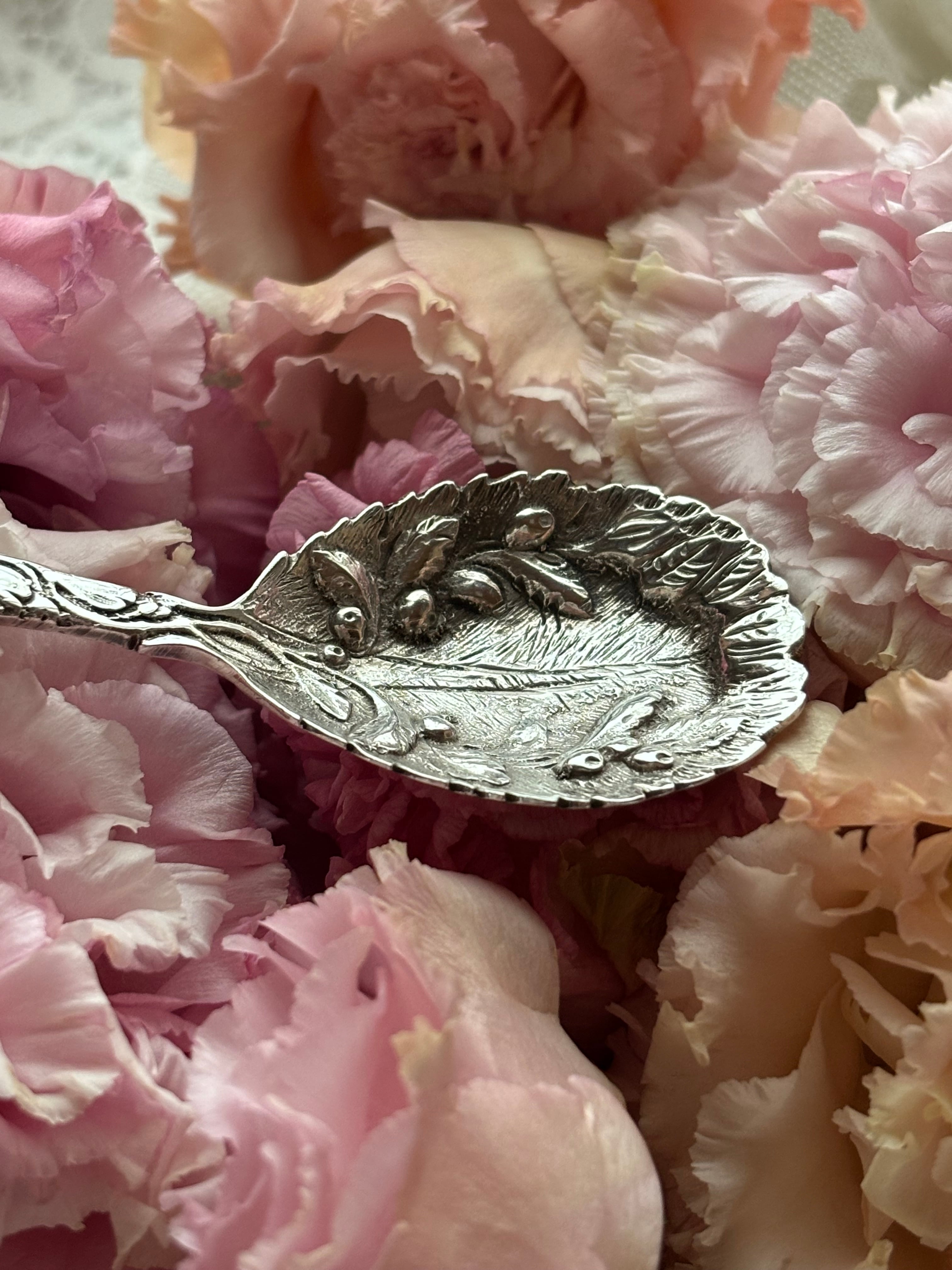 英国製 スターリングシルバー キャディスプーン オリーブ装飾 シェフィールド 1987年