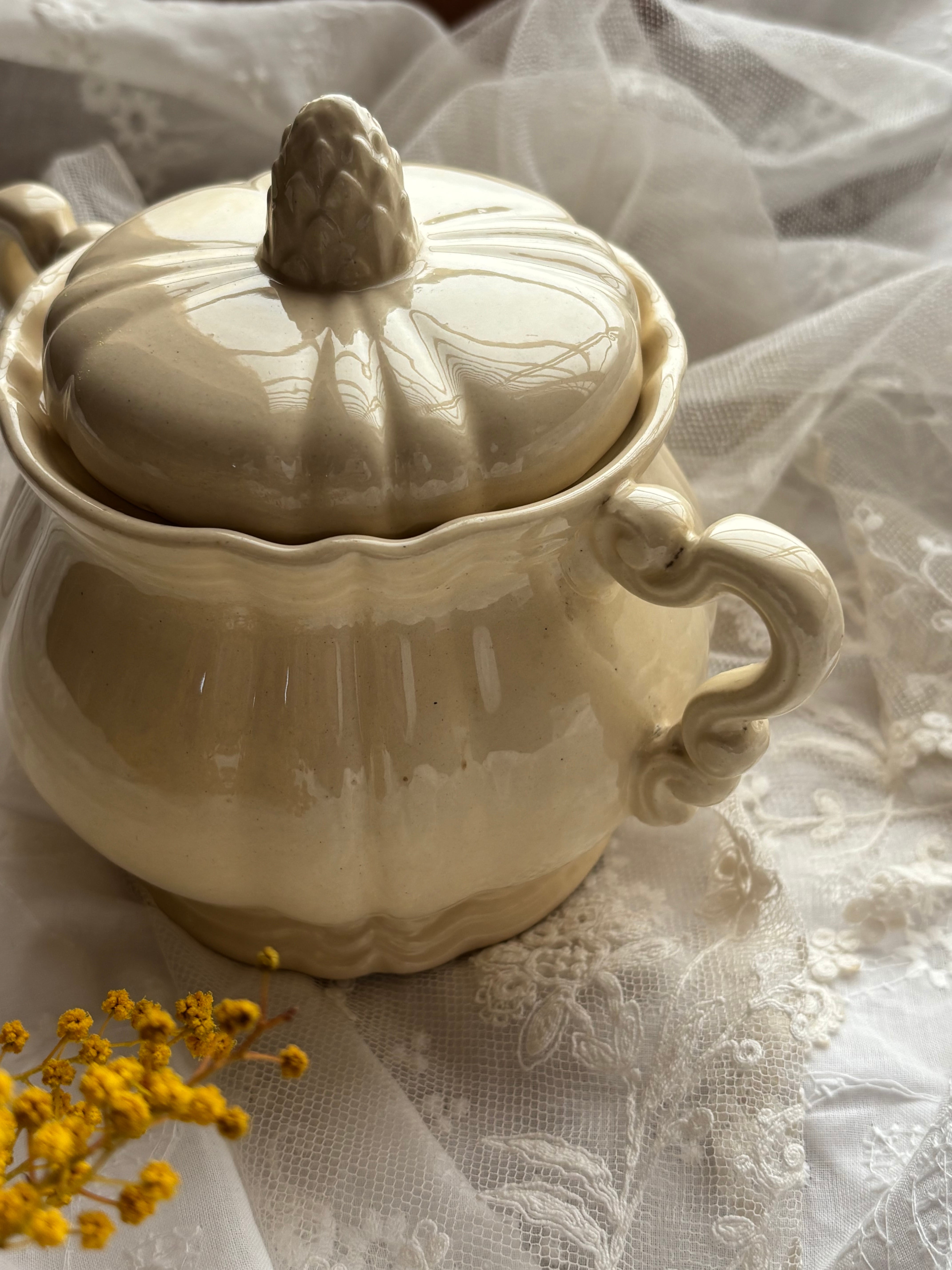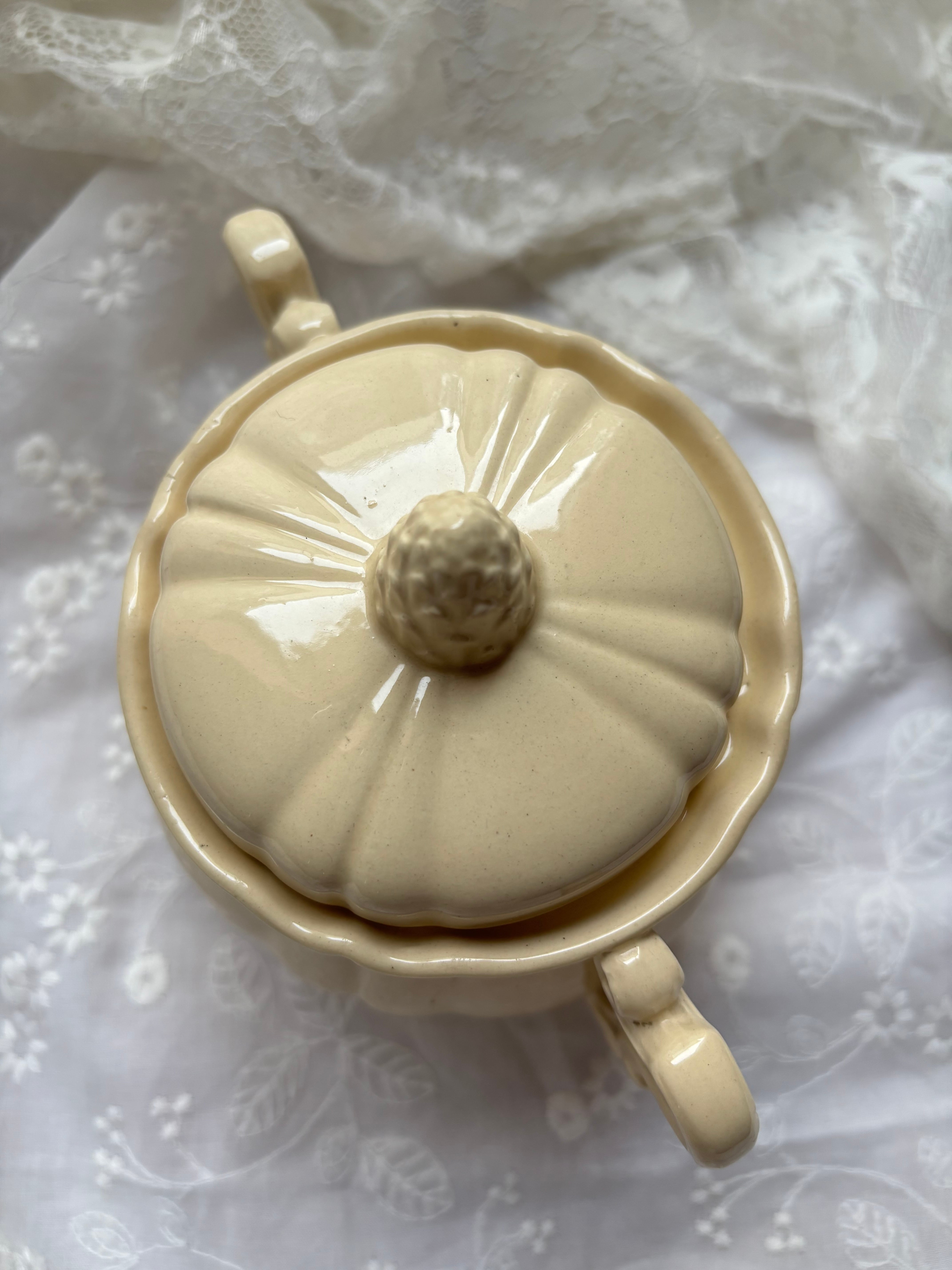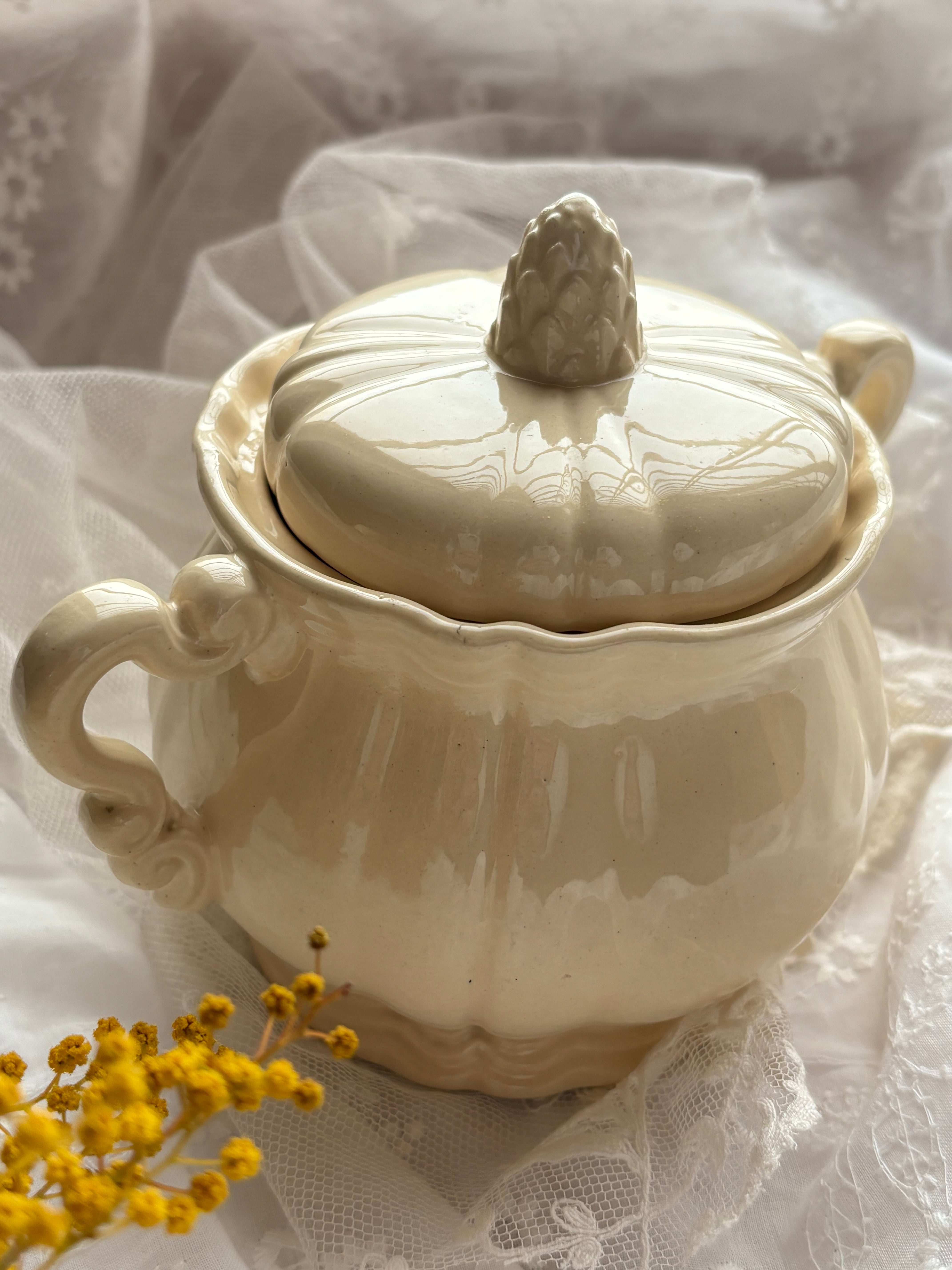 ロアン様式 アーティチョーク蓋 シュガーポット アイボリー陶器 フランスアンティーク
