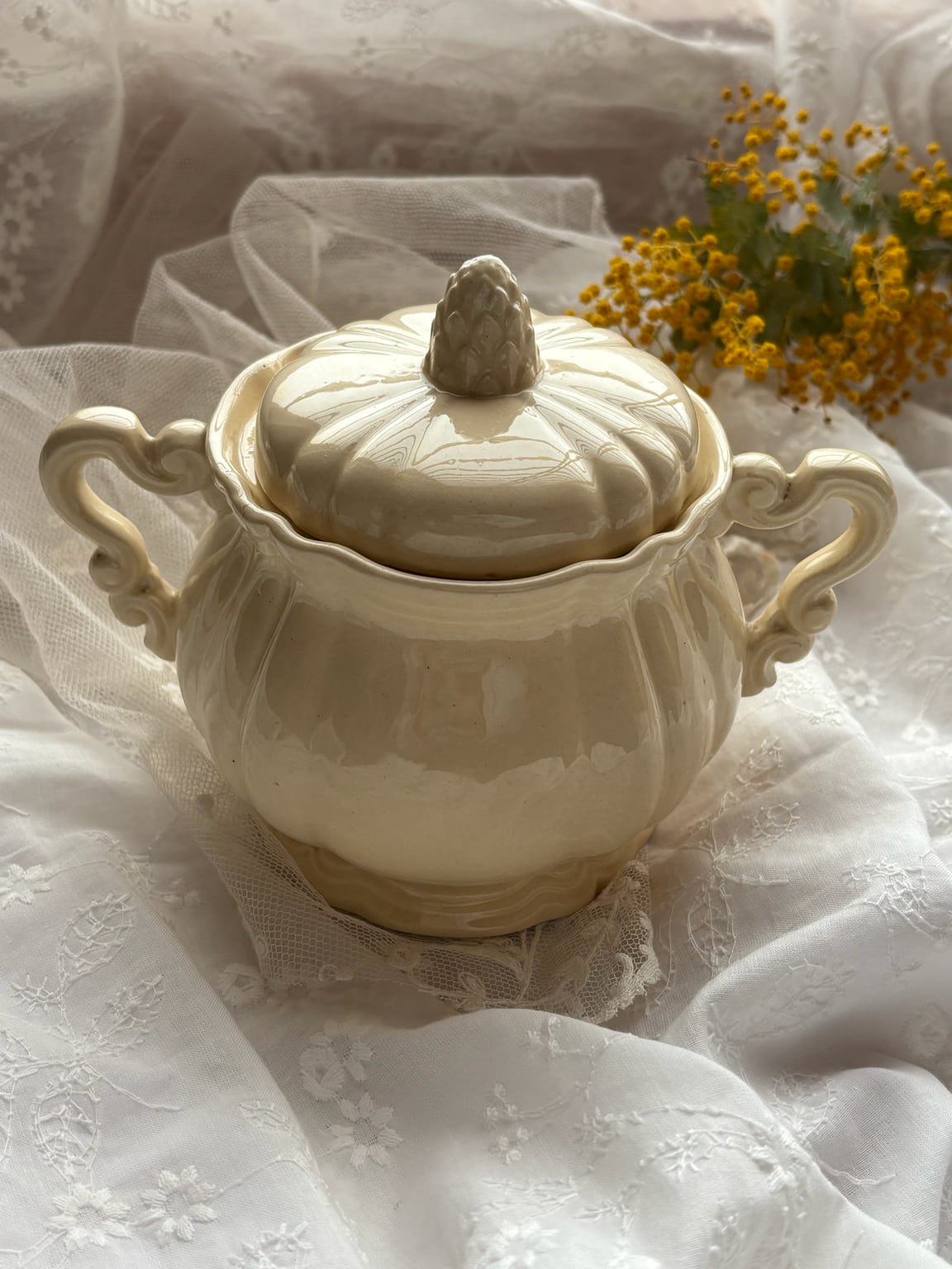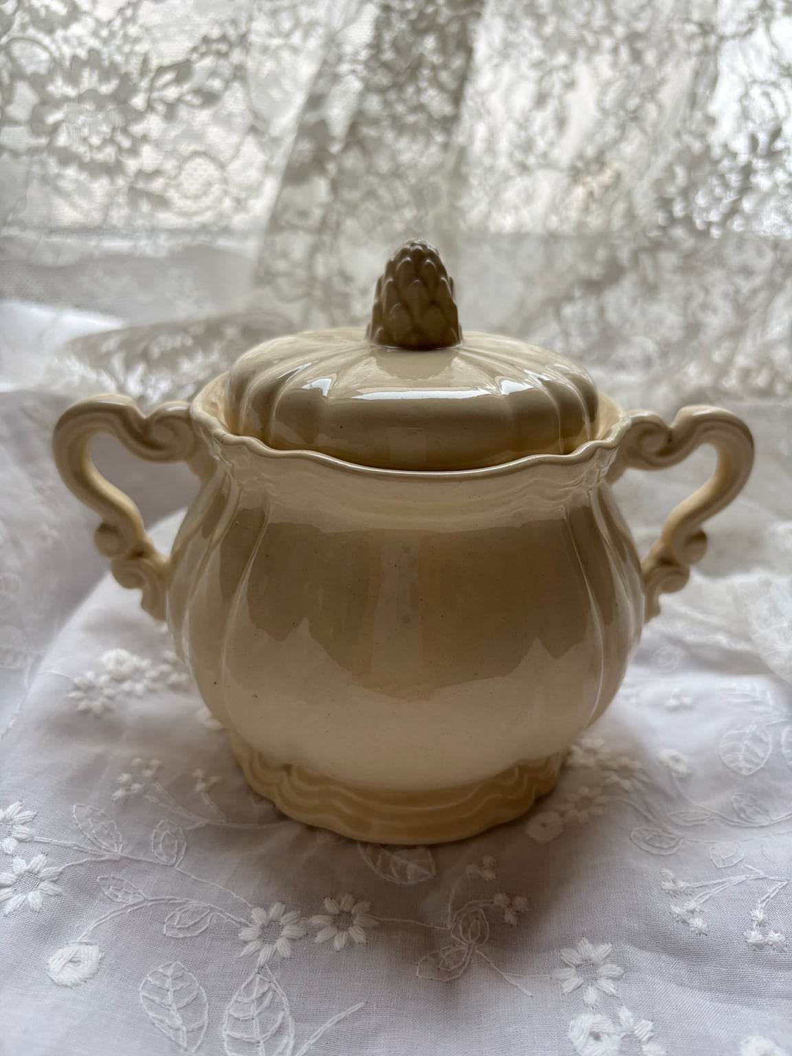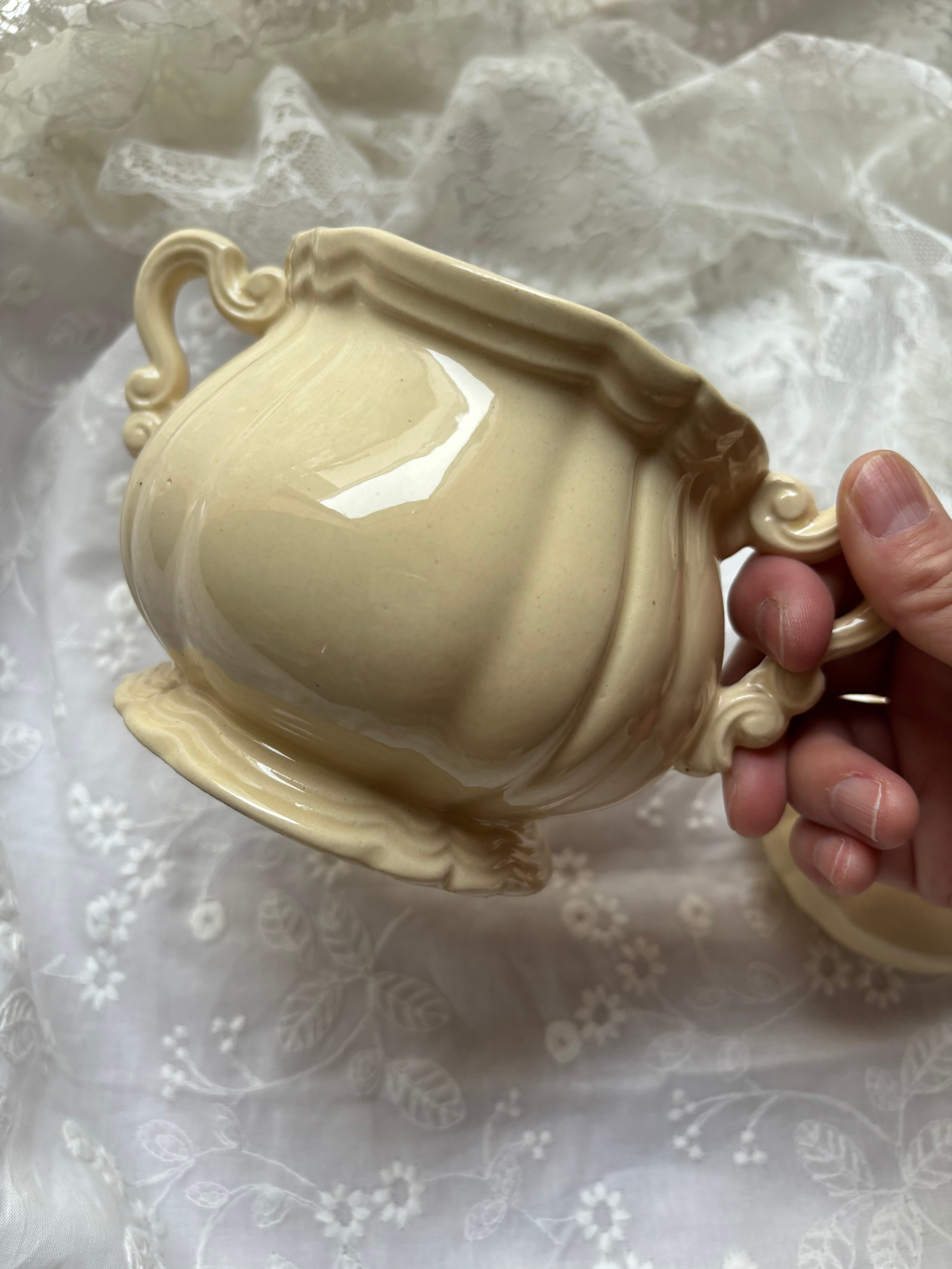 ロアン様式 アーティチョーク蓋 シュガーポット アイボリー陶器 フランスアンティーク