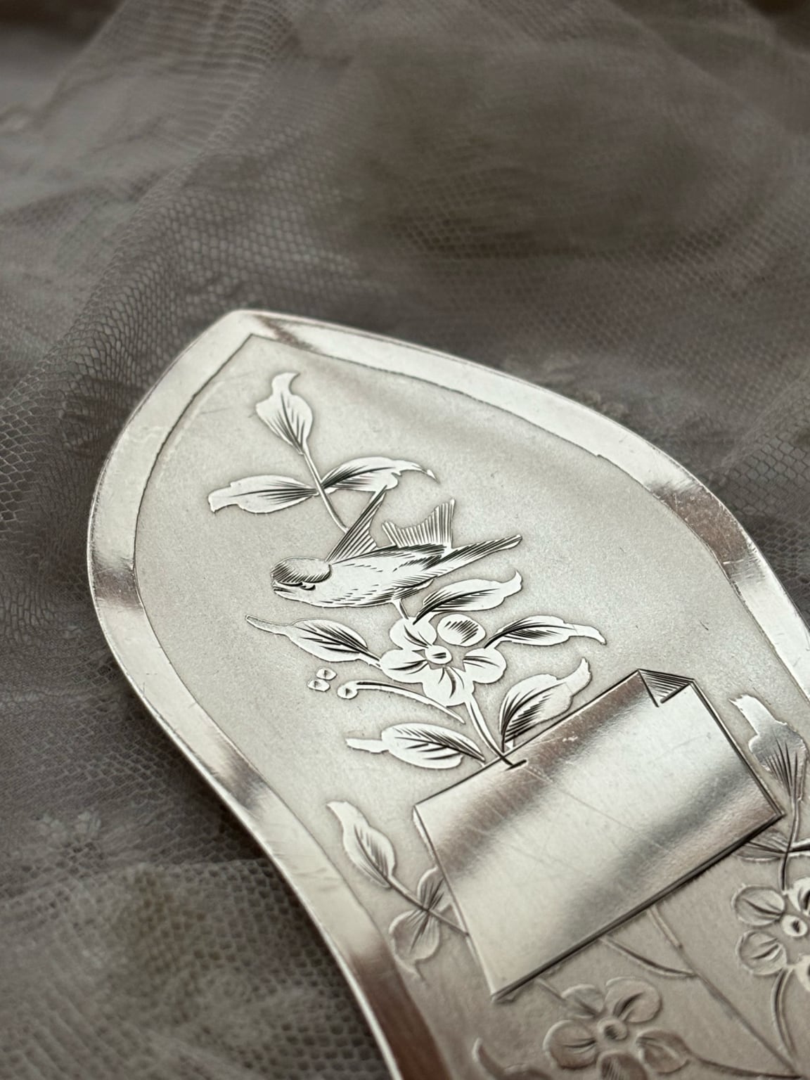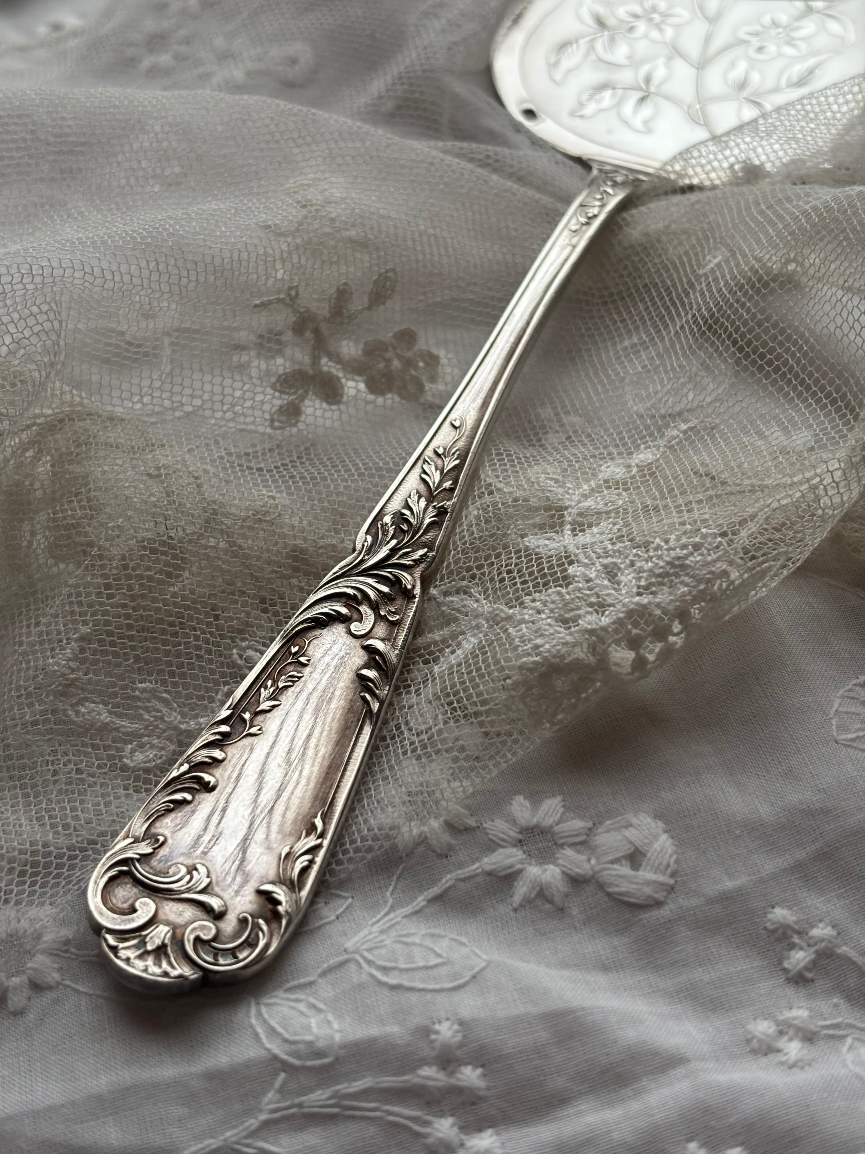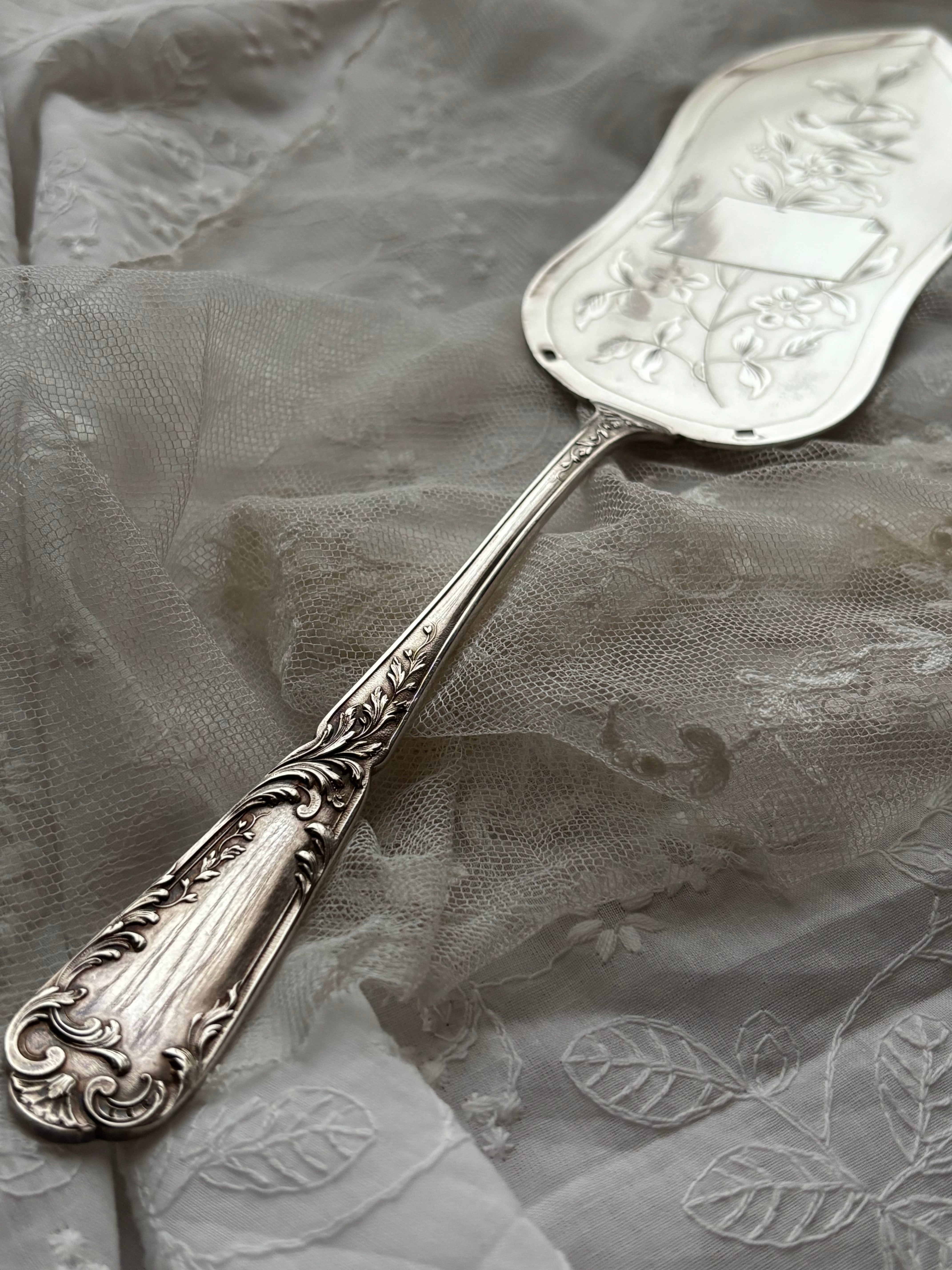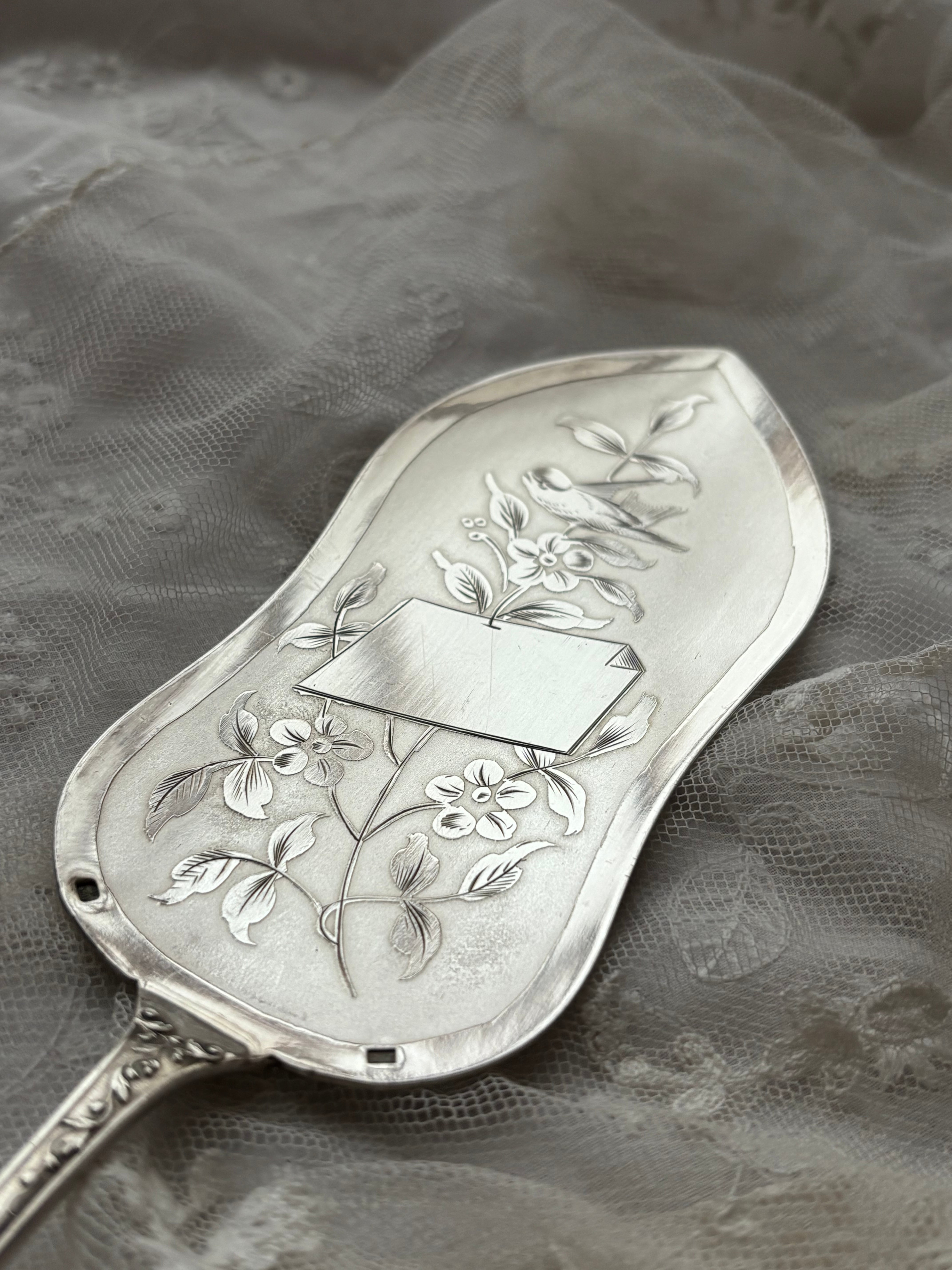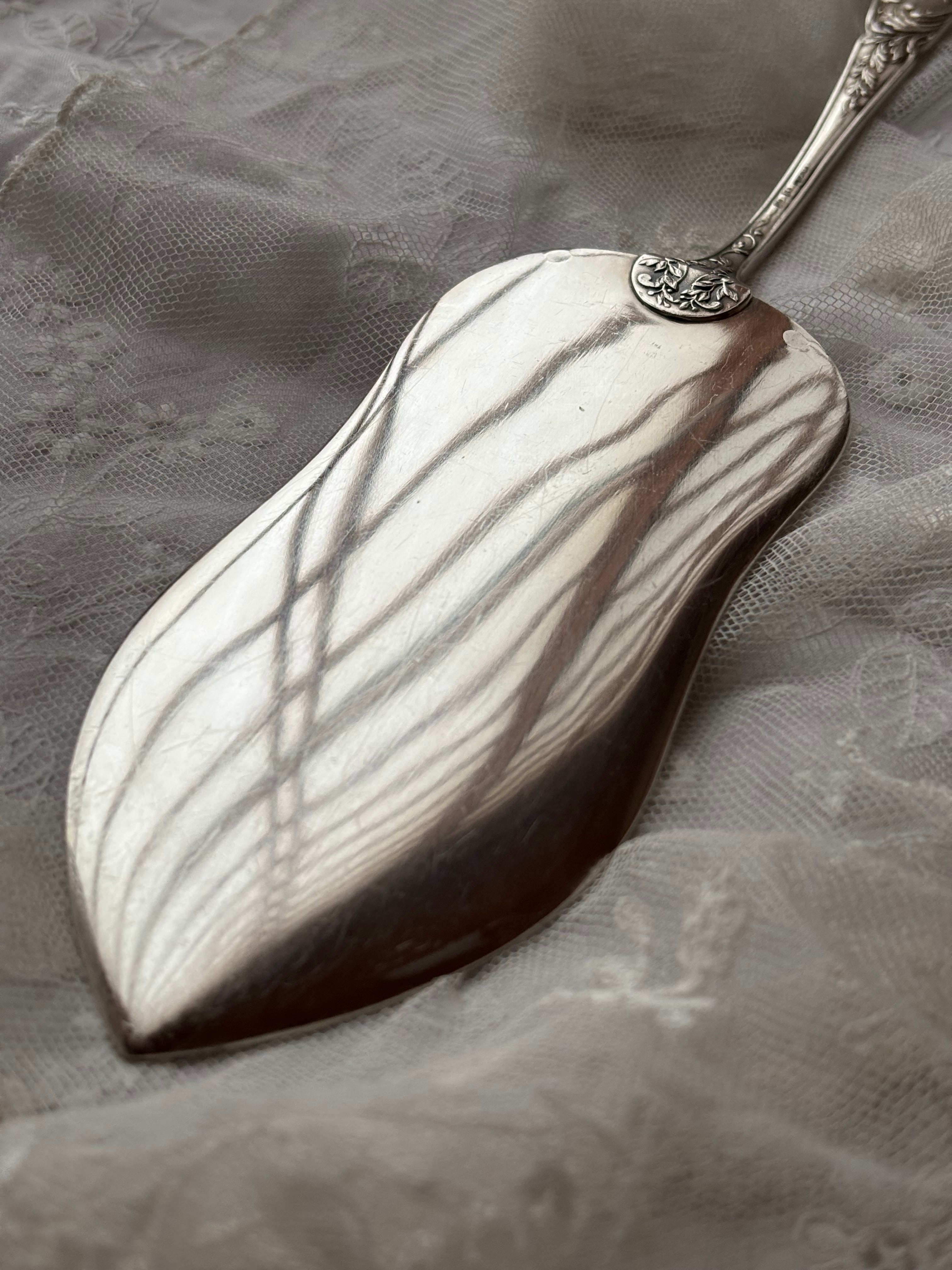 英国製 シルバープレート ケーキサーバー — 鳥と草花のエングレービング/専用ケース付き