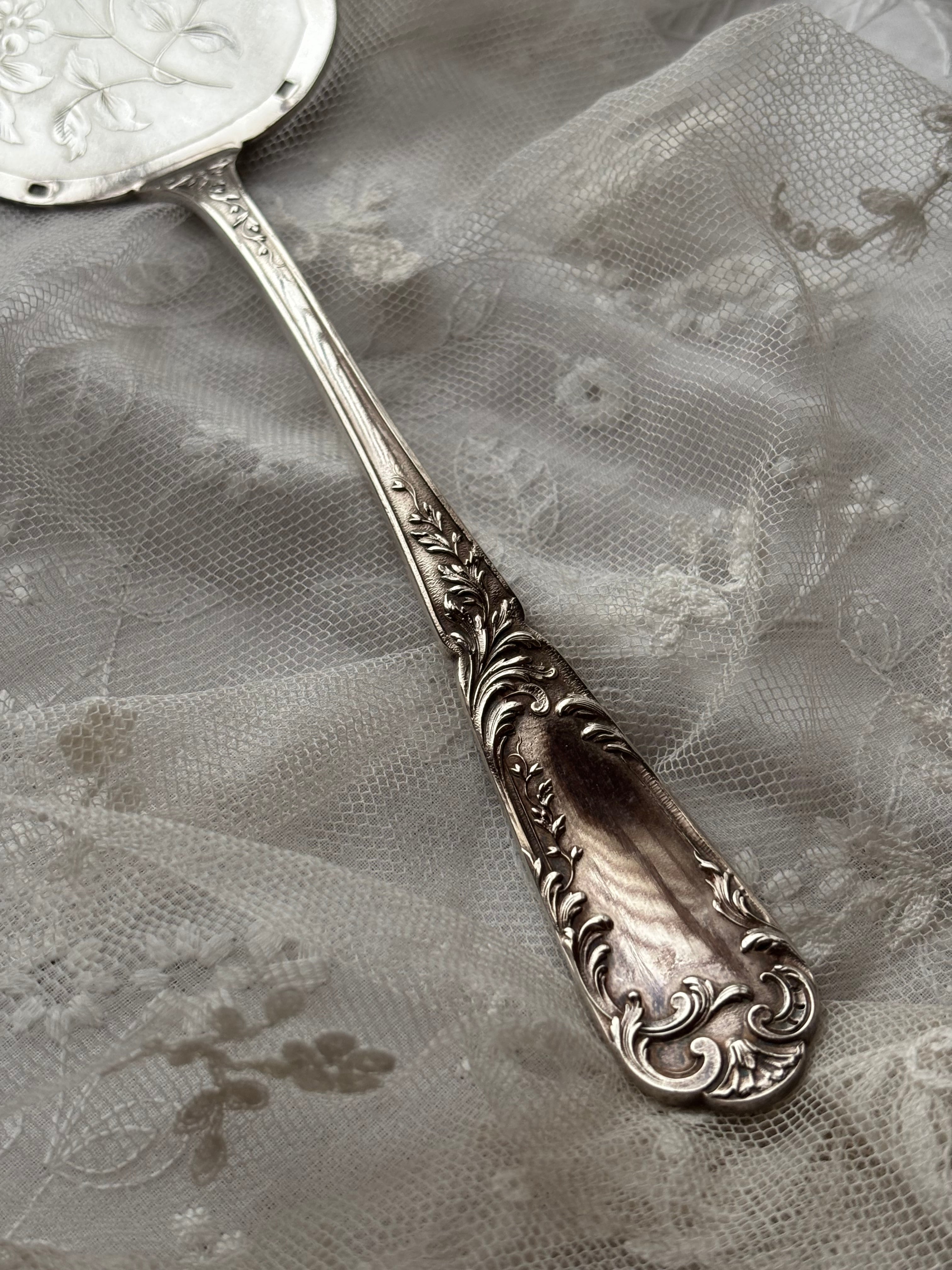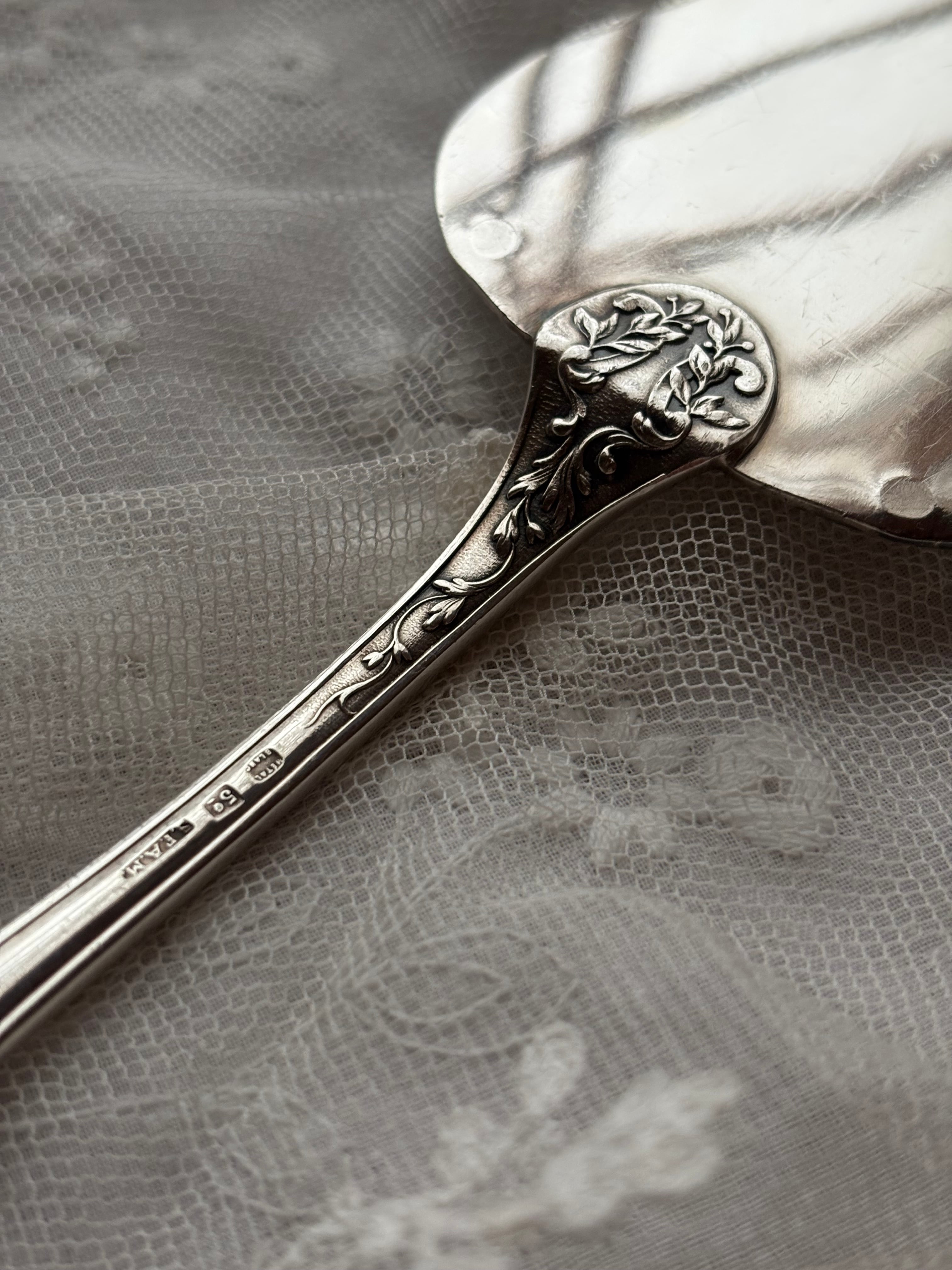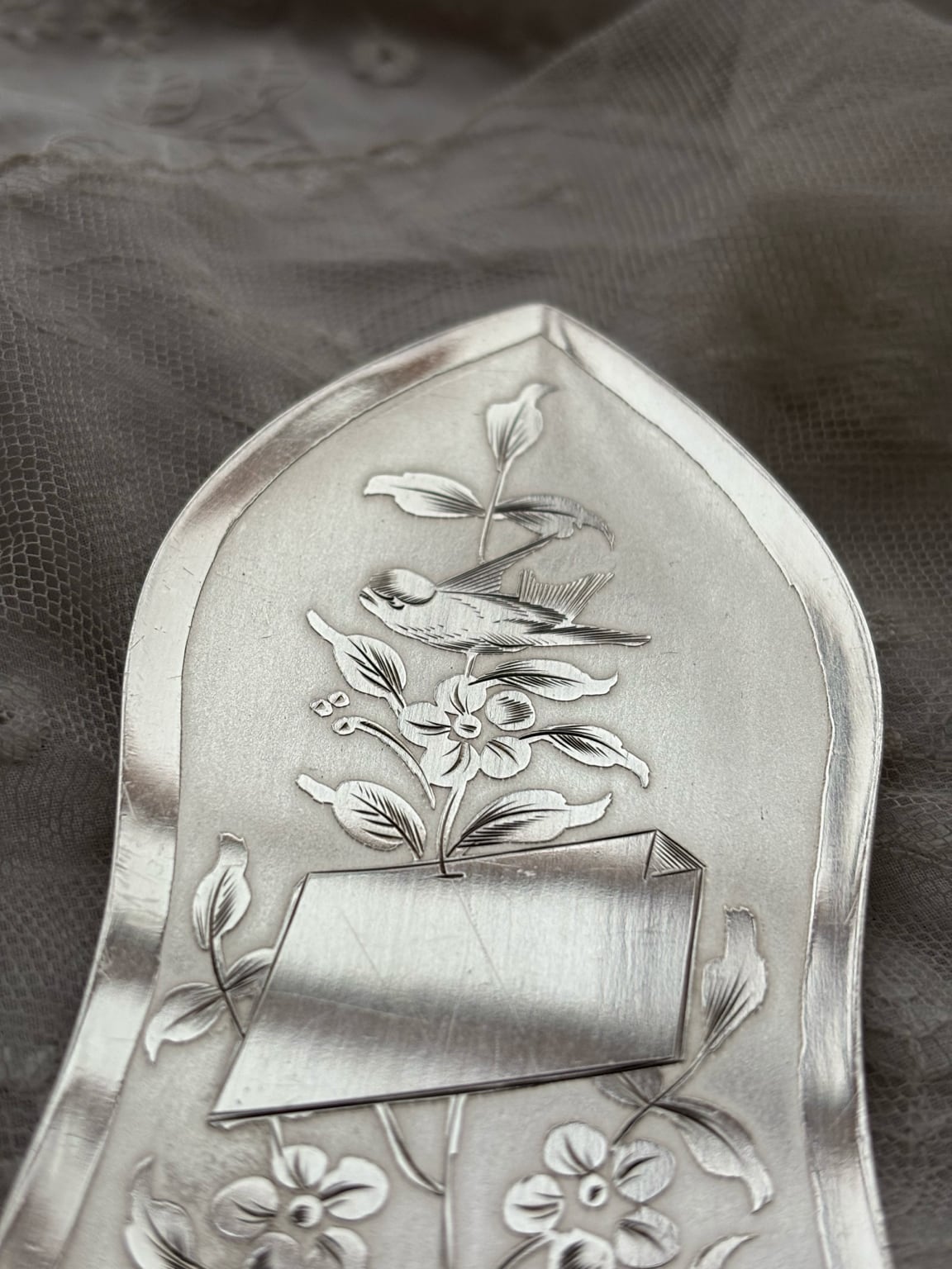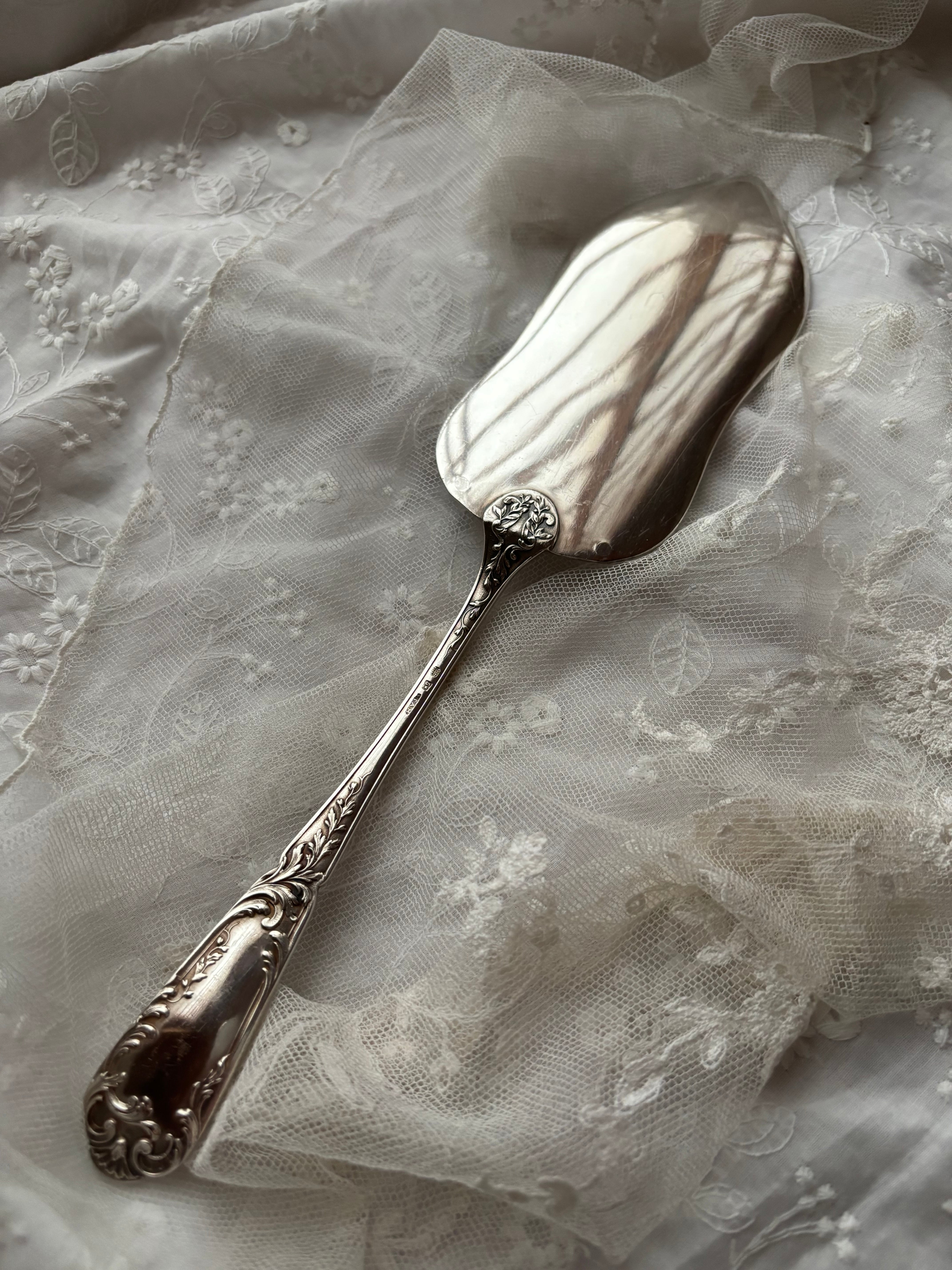 英国製 シルバープレート ケーキサーバー — 鳥と草花のエングレービング/専用ケース付き