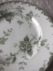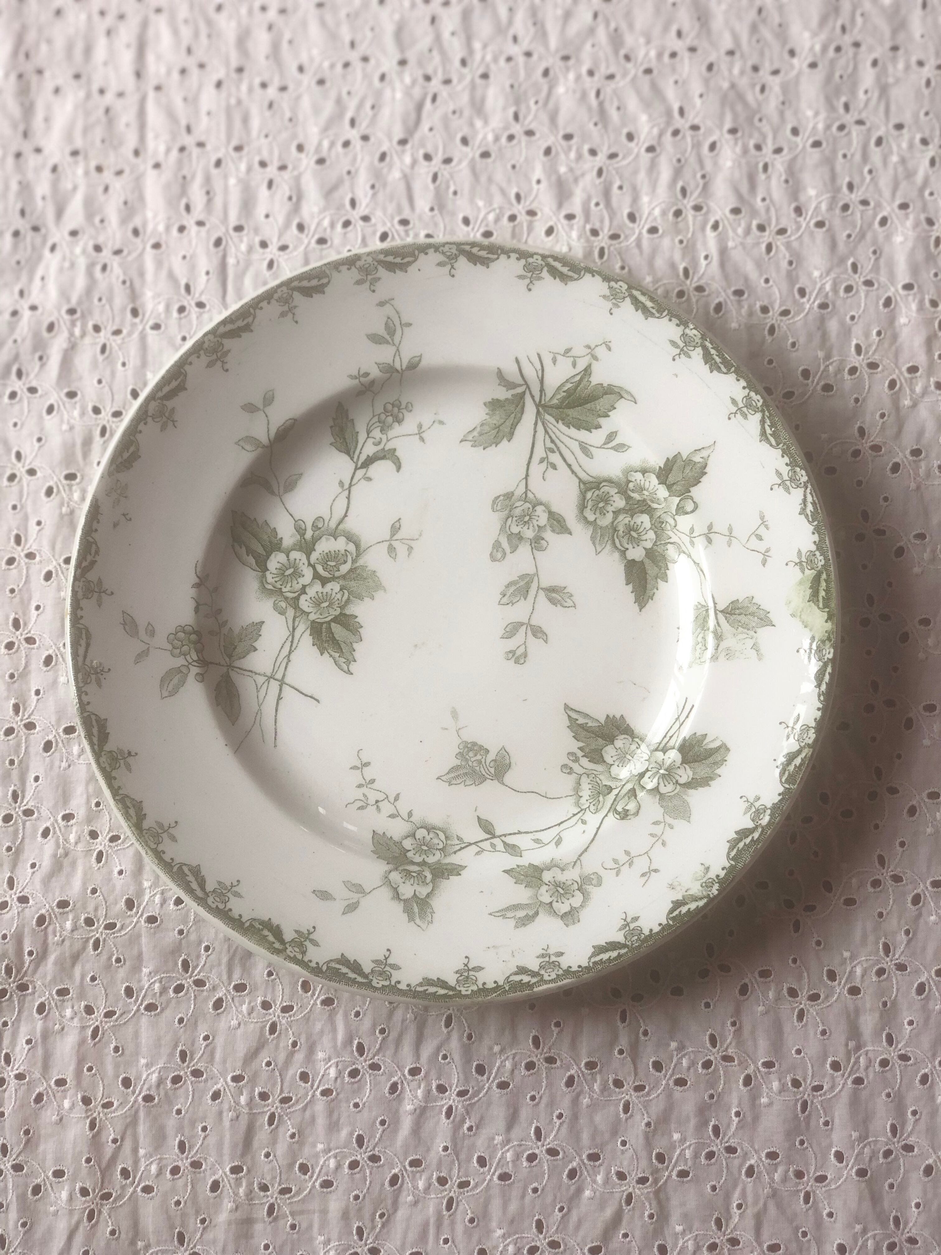 小バラが繊細に優しく描かれたプレートです。爽やかな新緑をイメージさせるお皿です。